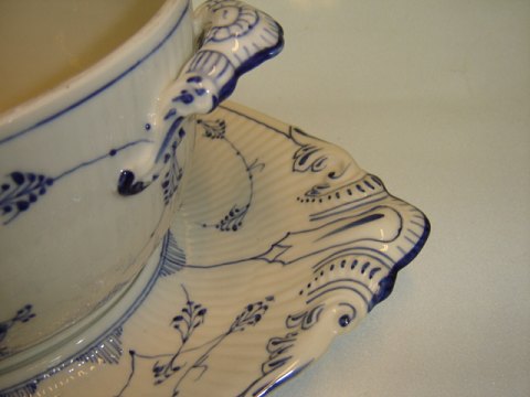Royal Copenhagen Blue Fluted Plain, Rare Oval Tureen to 18 person with tray Decoration number 1/360 + 1/218 All in factory first Length: Tray 45 cm. Turen 34 cm. Heigth: 23 cm. Perfect condition