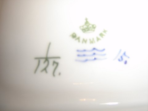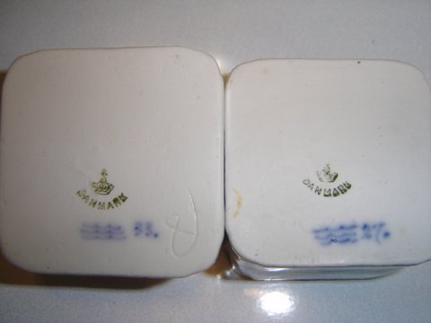 Kongelig Musselmalet Riflet, Skrivetøj med to huse fra før 1923 Dek. nr. 1/127 på bakke Måler 22 x 15 cm. Låget til huset er m/skår og en uden låg