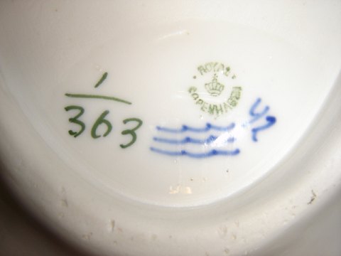 Kongelig Musselmalet Riflet, Mega stort Fad, helt fladt m/ tunge kant fra før 1923 Dek. nr. 1/363 Længde 54 cm. Bredde 24 cm