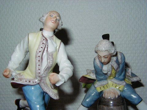 Bing & Grondahl Overglaze Figures by Hans Tegner and Jens Jacob Bregno. To the left with decoration number 8028, height 16 cm., to the right decoration number 8029,Sold height 14.5 cm. Both are factory first and both in perfect condition.