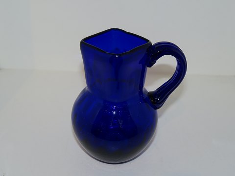 Større mørkeblå glas flødekande med firkantet top fra Tyskland ca. 1890-1910