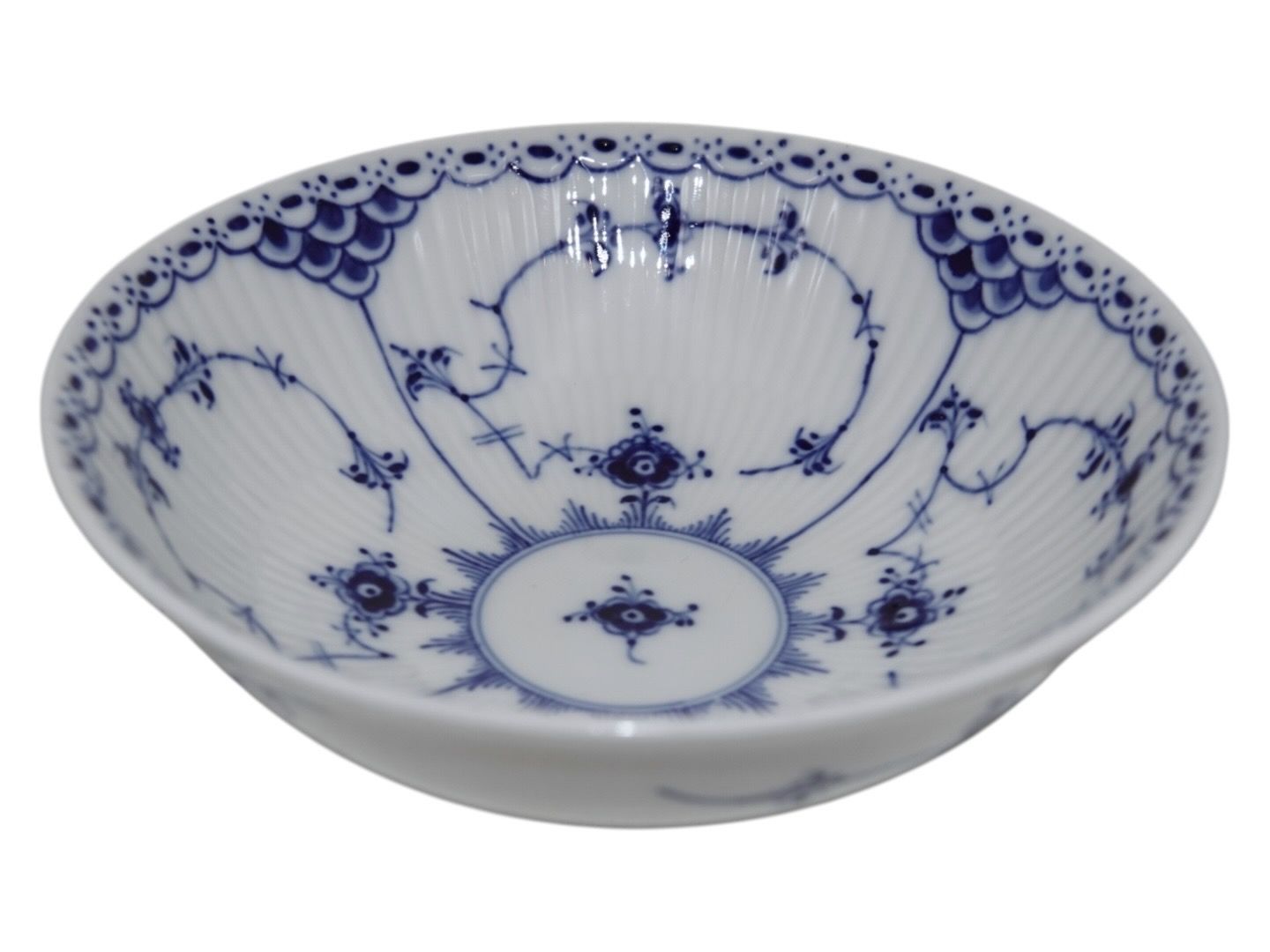 Royal Copenhagen Blue Fluted Half Lace, bowl for cereal. Decoration number 1/624. Factory second. Diameter 16.0 cm. Perfect condition with no chips, cracks or repairs.