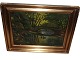 Heinrich Nielsen, oil painting, green landscape with ducks.