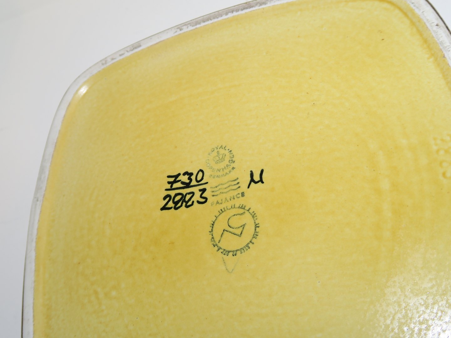 Royal Copenhagen Fajance Baca gul firkantet skål.