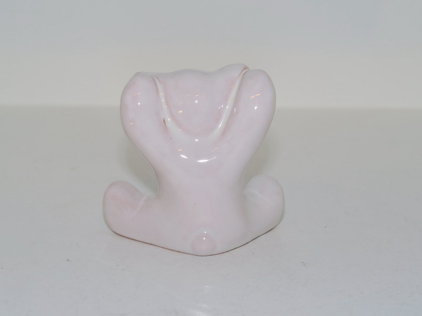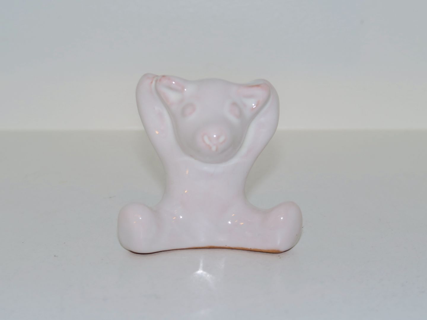 Hjorth keramik miniature figur, hvid bjørneunge med armene op.