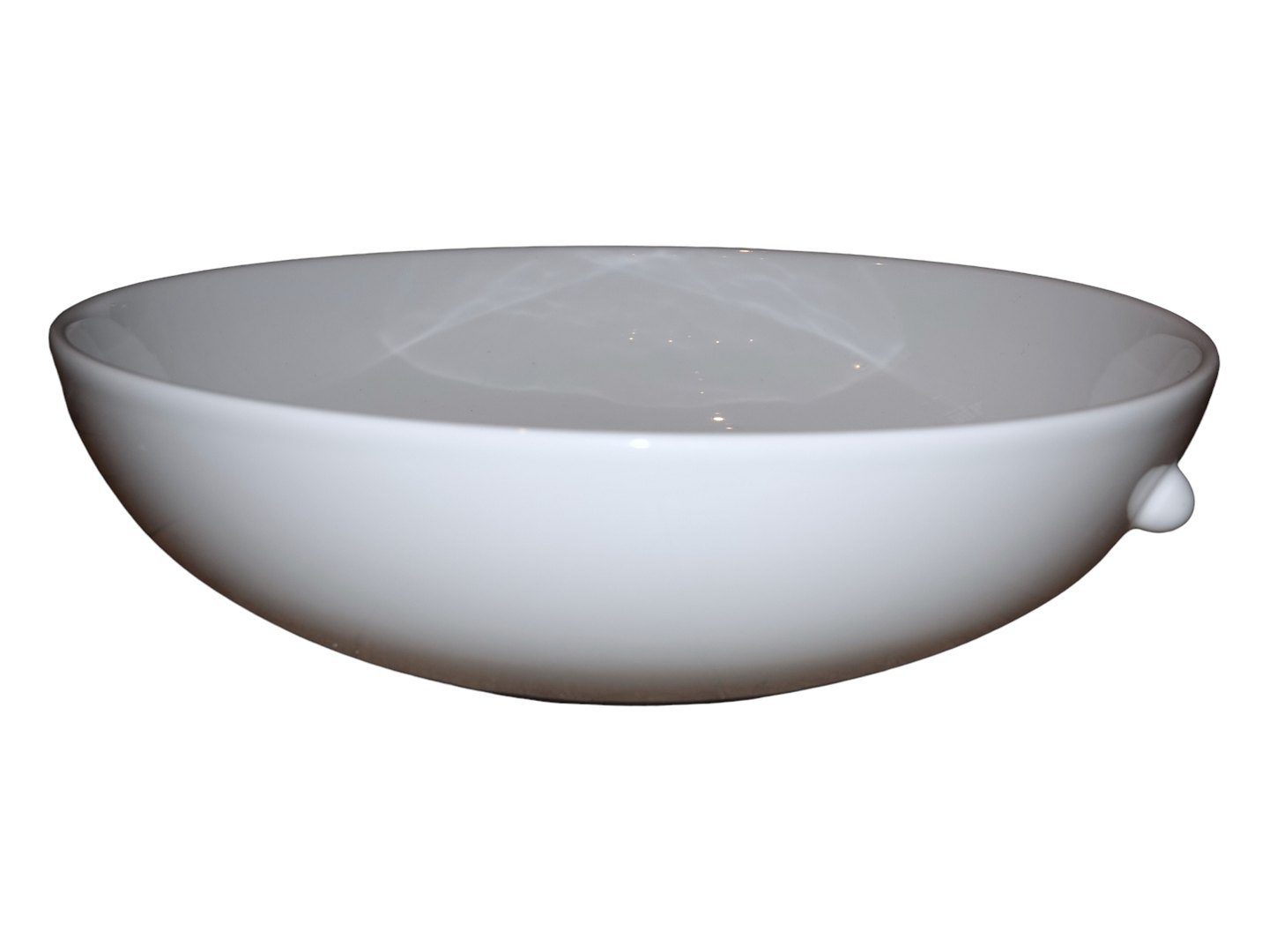 Royal Copenhagen, stor skål med blå prikker. Designet af Ursula Munch-Petersen. Dekorationsnummer 570. 3. sortering men solgt til medarbejder og flot eksemplar. Diameter 38,3 cm. Perfekt stand.