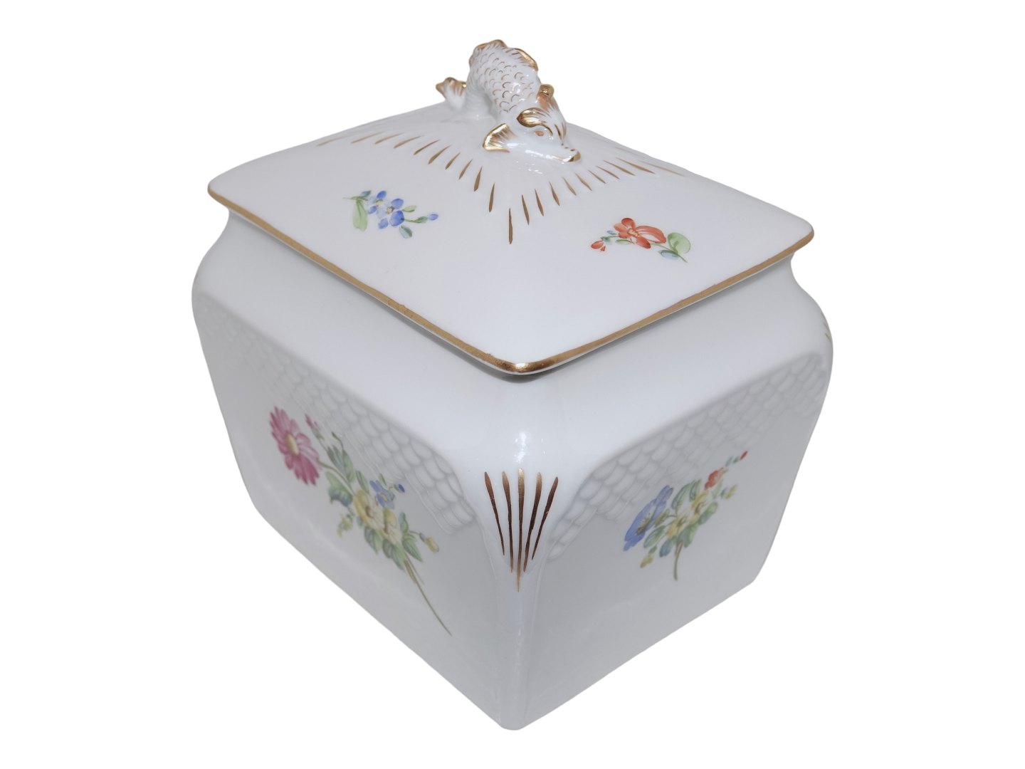 Bing & Grøndahl Saksisk Blomst på hvidt porcelæn, kiksespand.