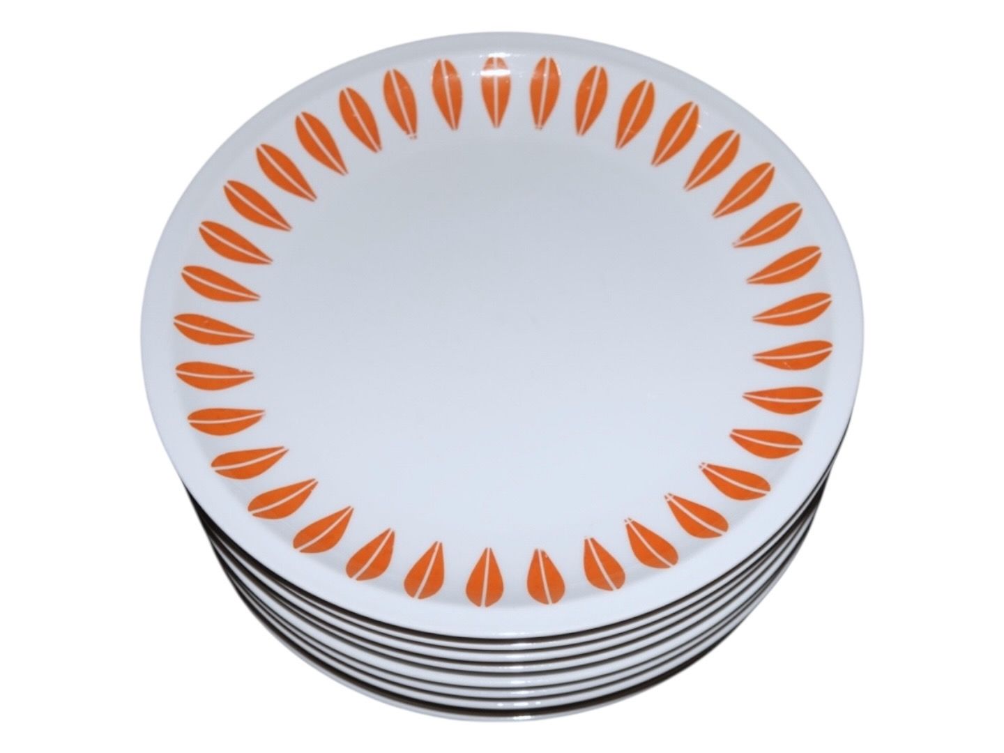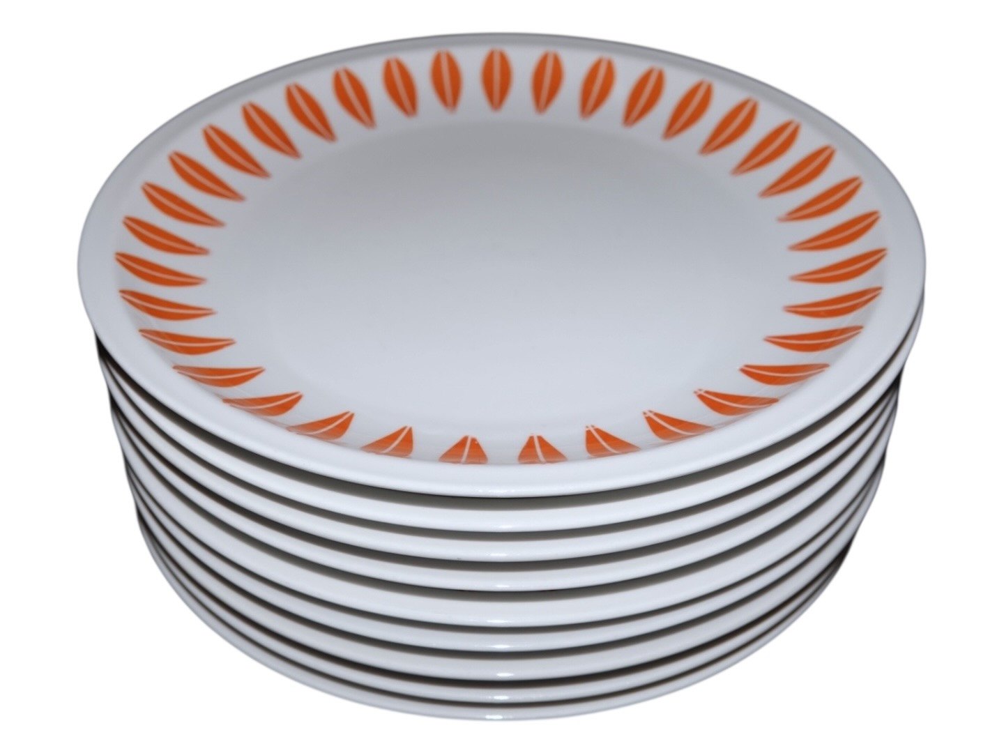Lyngby Lotus, middagstallerken med orange dekoration.