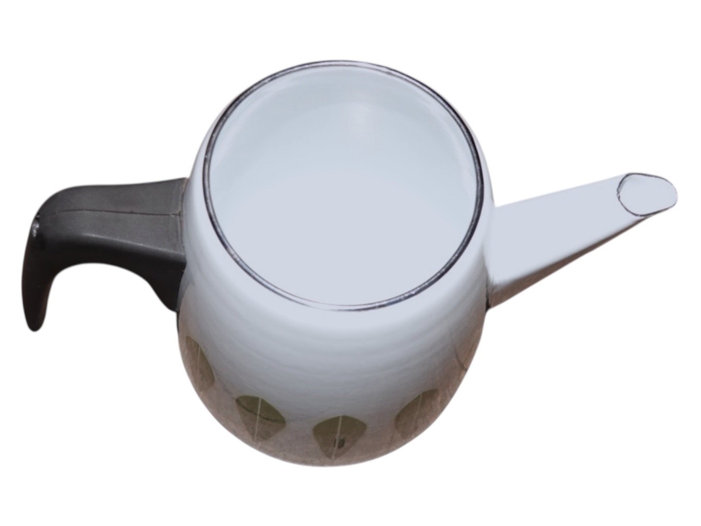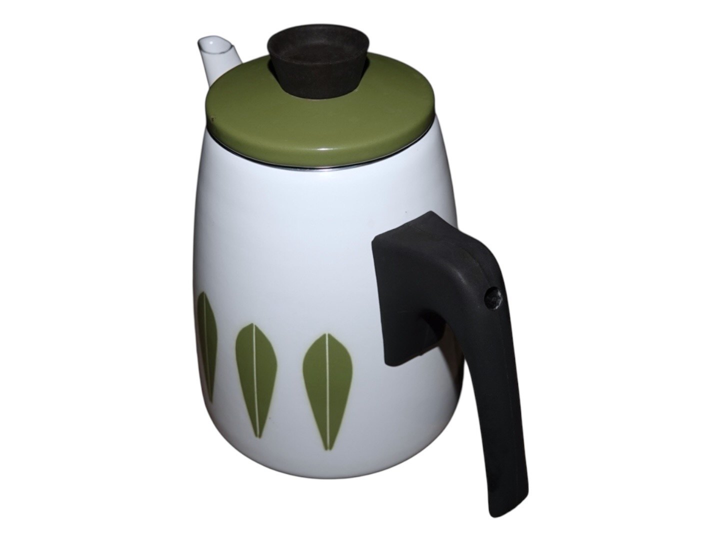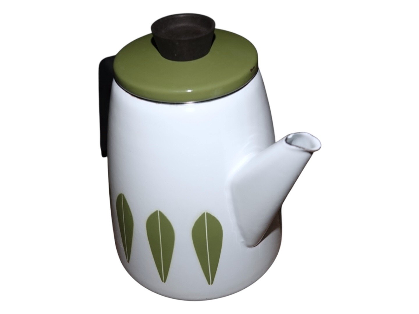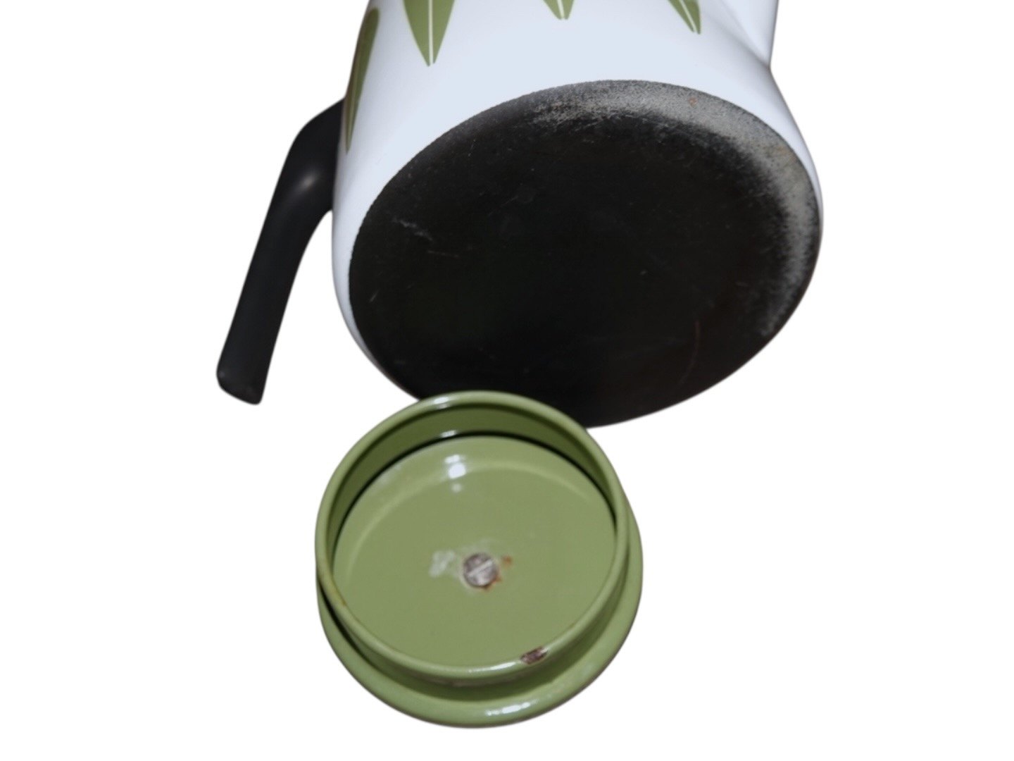 Hvid og grøn emalje Lotus kaffekande fra Cathrineholm i Norge.