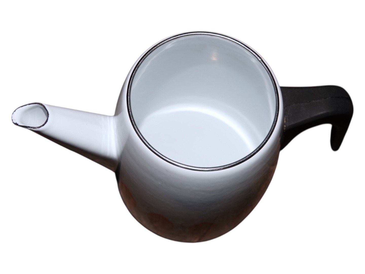 Hvid og orange emalje Lotus kaffekande fra Cathrineholm i Norge.
