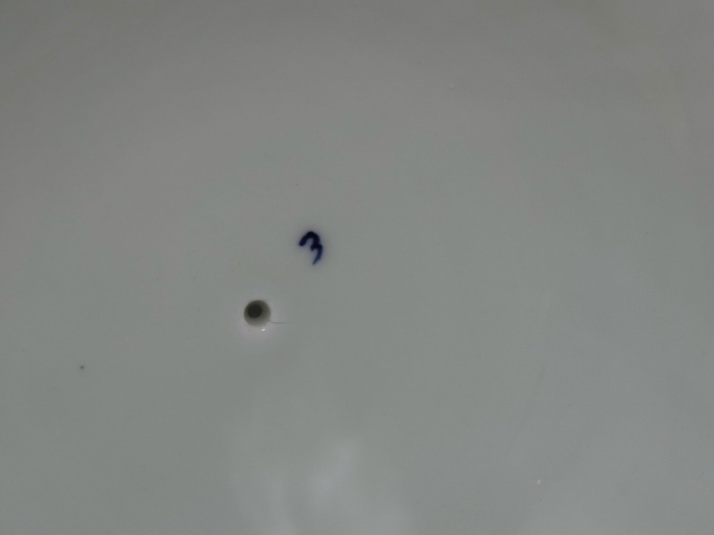 On the very first porcelain from Royal Copenhagen you ofter see glaze faults. Here is one at the lid in the blue decoration. There are also some small spots in the glaze. At the edge of the lid is a grinding, that it may be born with. There is also a small chip on the edge of the tureen, where the lid rests. Please see the close-up pictures. But all together the tureen is in a very good and well kept condition.