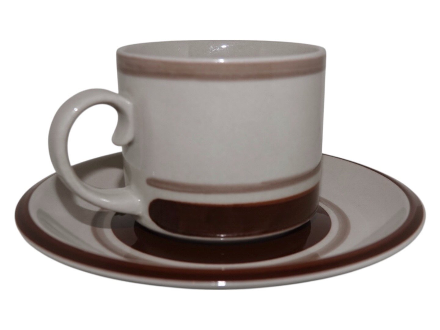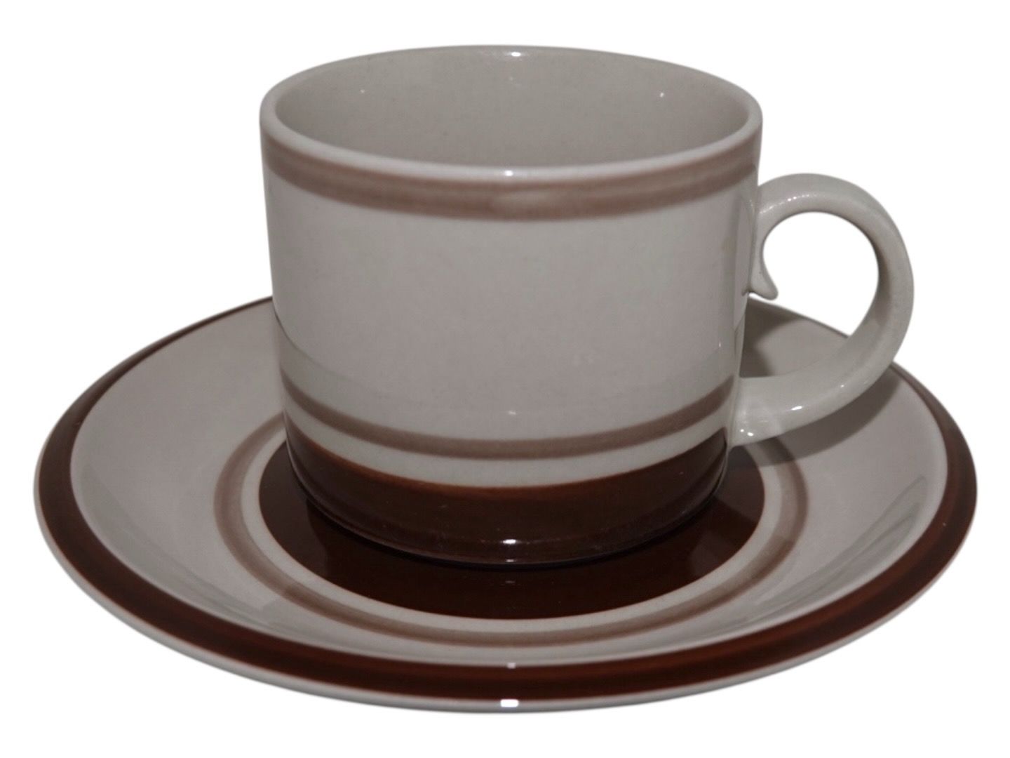 Arabia Finland Pirtti, kaffekop med underkop. Designet af Anja Jaatinen-Winquist og produceret i perioden 1969 til 1985. Diameter på koppen er 7,6 cm. og højden er 6,6 cm. Perfekt stand.