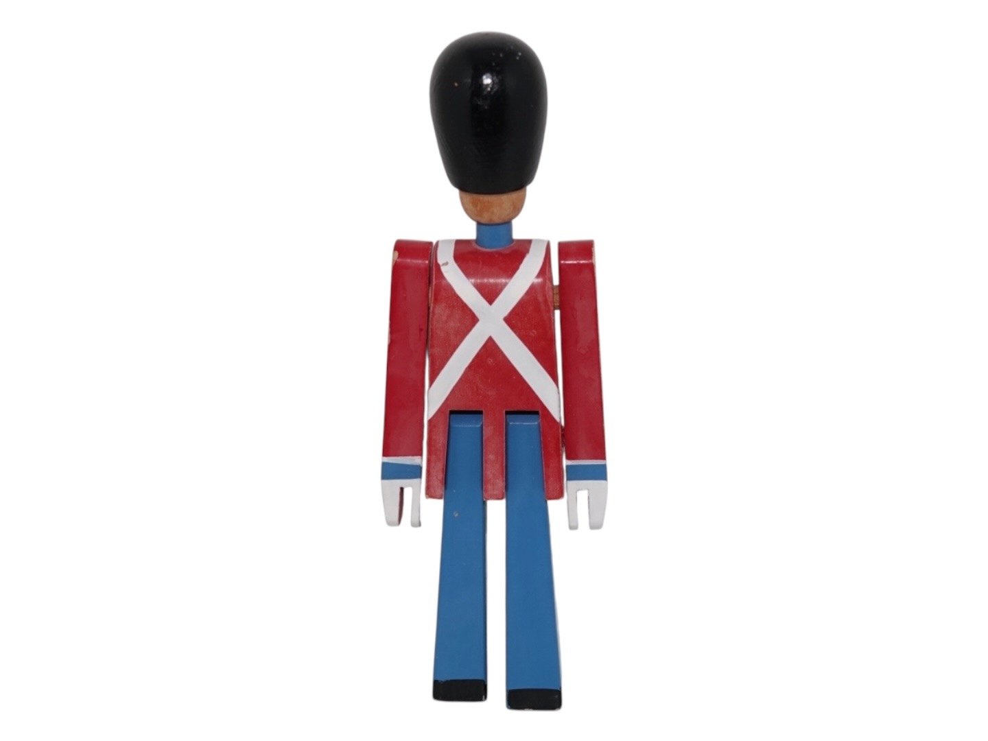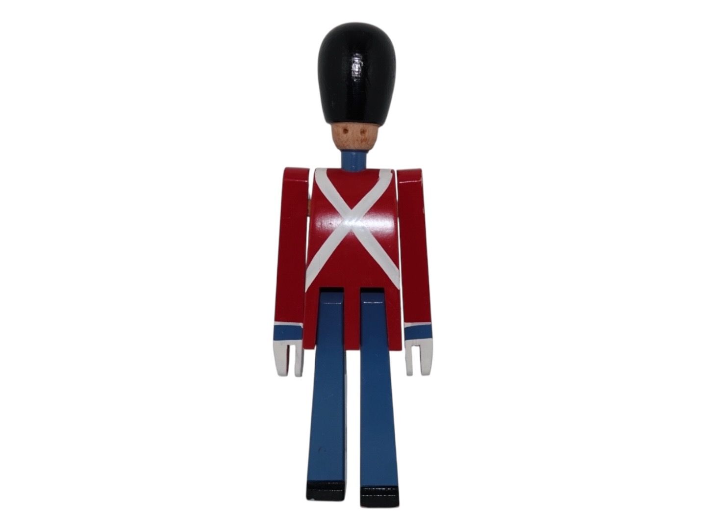 Kay Bojesen træfigur. Garder i blå bukser i gammel udgave. Mærket "KAY BOJESEN COPYRIGHT DENMARK". Højde 22,5 cm. På bagsiden er farverne lidt falmet ellers i fin og velholdt stand.