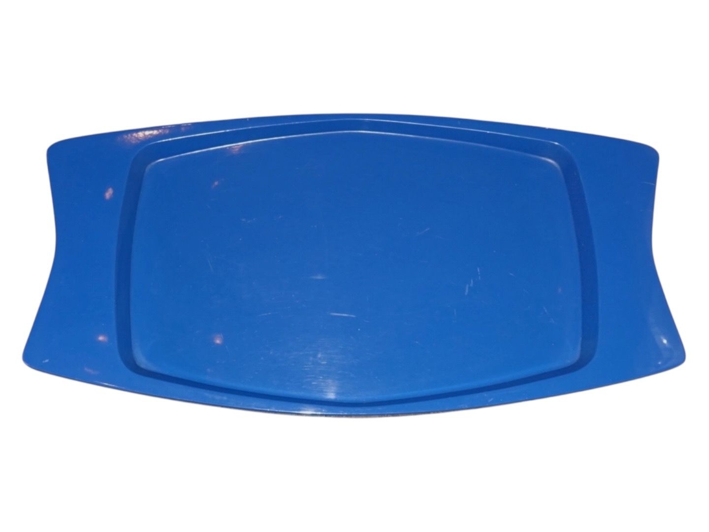 Dansk Designs IHQ, et sjældent kæmpe fad i en flot blå farve. Designet af Jens Quistgaard. Længde 70,5 cm., bredde 36,5 cm. Flot og velholdt stand.