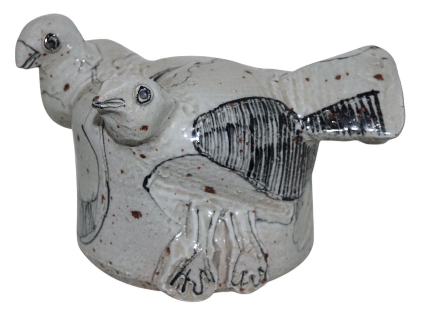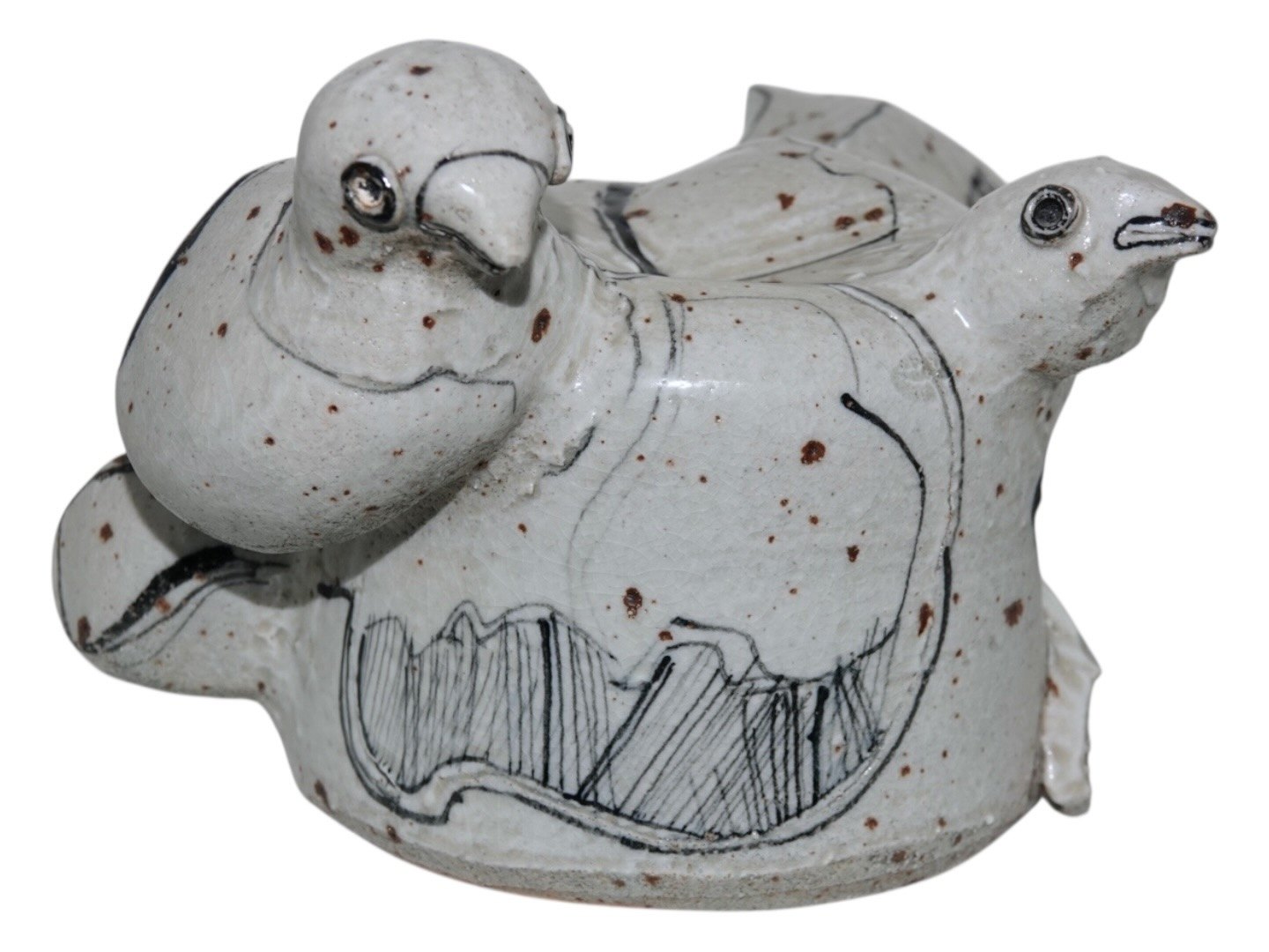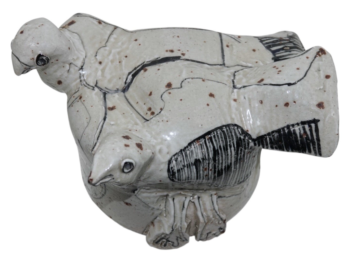 Bing & Grøndahl stentøjsfigur, to fugle designet af Sten Lykke Madsen. Unika. 1. sortering. Længde 27,5 cm., bredde 24,0 cm., højde 15,5 cm. Perfekt stand uden fejl.