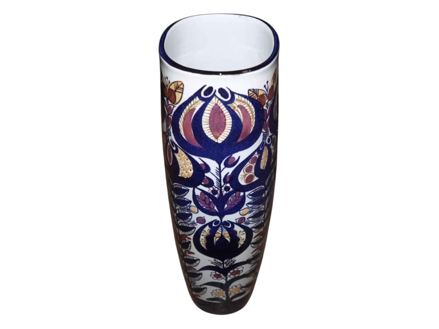 Høj Royal Copenhagen Tenera vase. Designet af Berte Jessen. Dekorationsnummer 233/3101. 3. sortering pga. medfødt glasurfejl ved bunden, se foto nr. 3. Højde 36,0 cm. Perfekt stand.