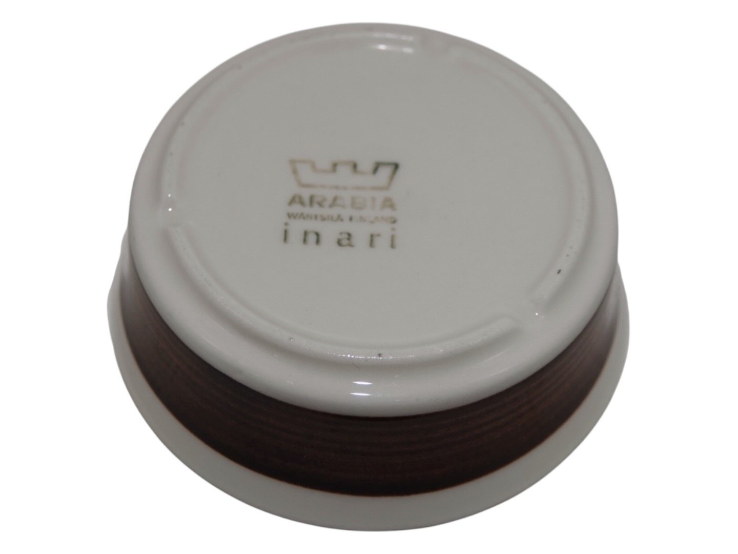 Arabia Finland Inari lille, lav mørkebrun sukkerskål. Designet af Göran Bäck i 1976. Diameter er 8,4 cm. og højden er 3,0 cm. Perfekt stand.