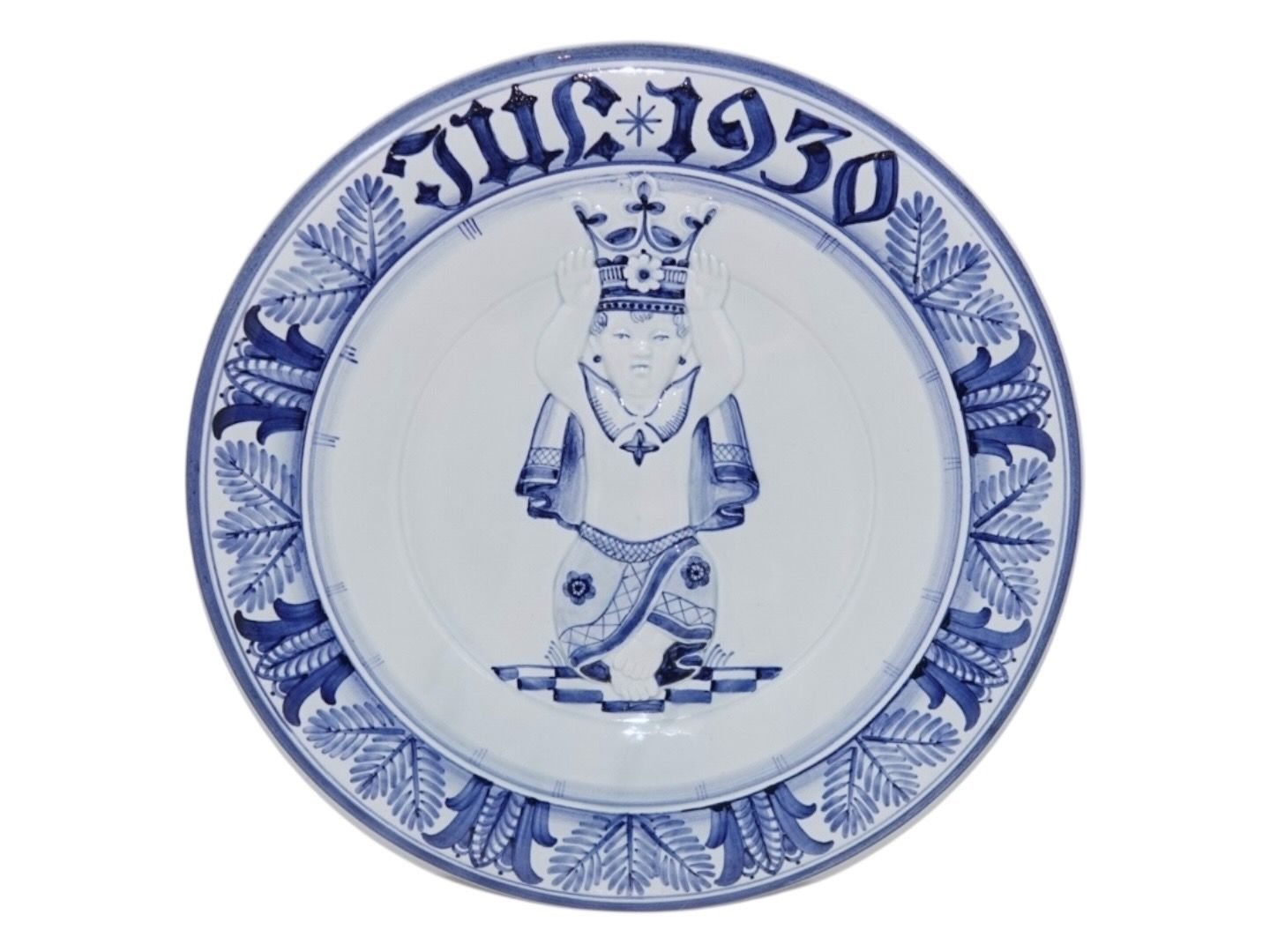 Aluminia Tranquebar, stor og sjælden set juleplatte fra 1930. Dekorationsnummer 4124/1406. 1. sortering. Diameter 30,8 cm. Perfekt stand uden fejl.
