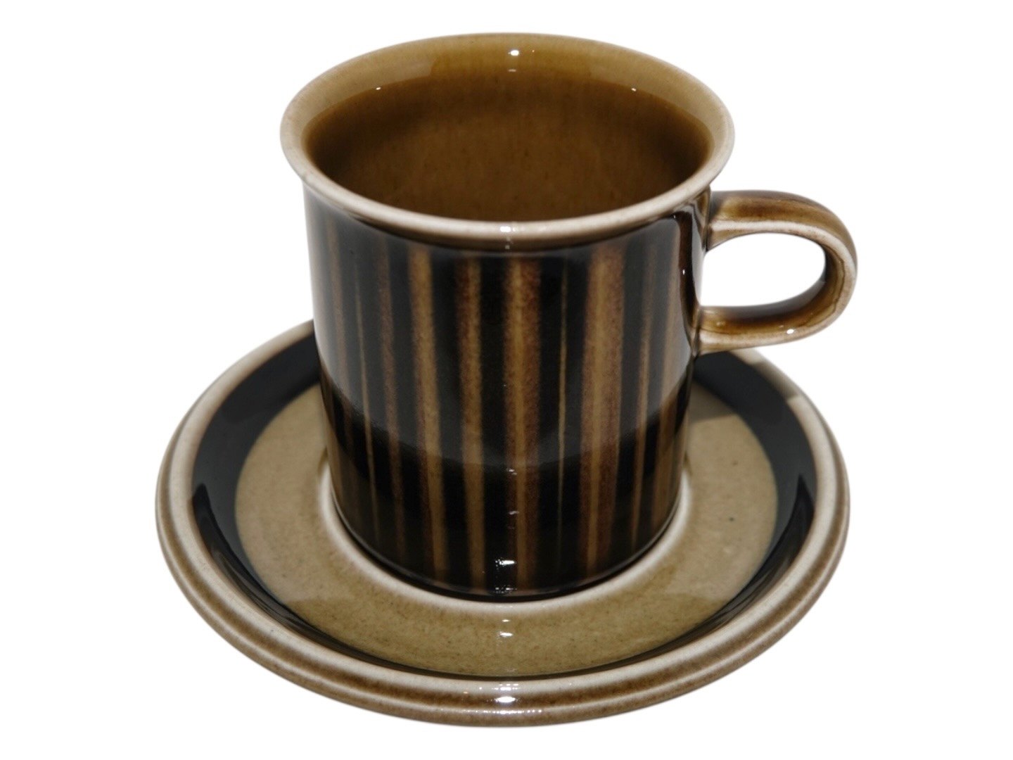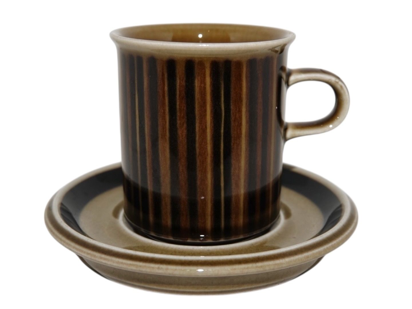 Arabia Finland Kosmos, kaffekop med underkop. Designet af Gunvor Olin-Grönqvist i 1962. Diameter på koppen er 7,0 cm. og højden er 7,8 cm. Perfekt stand.