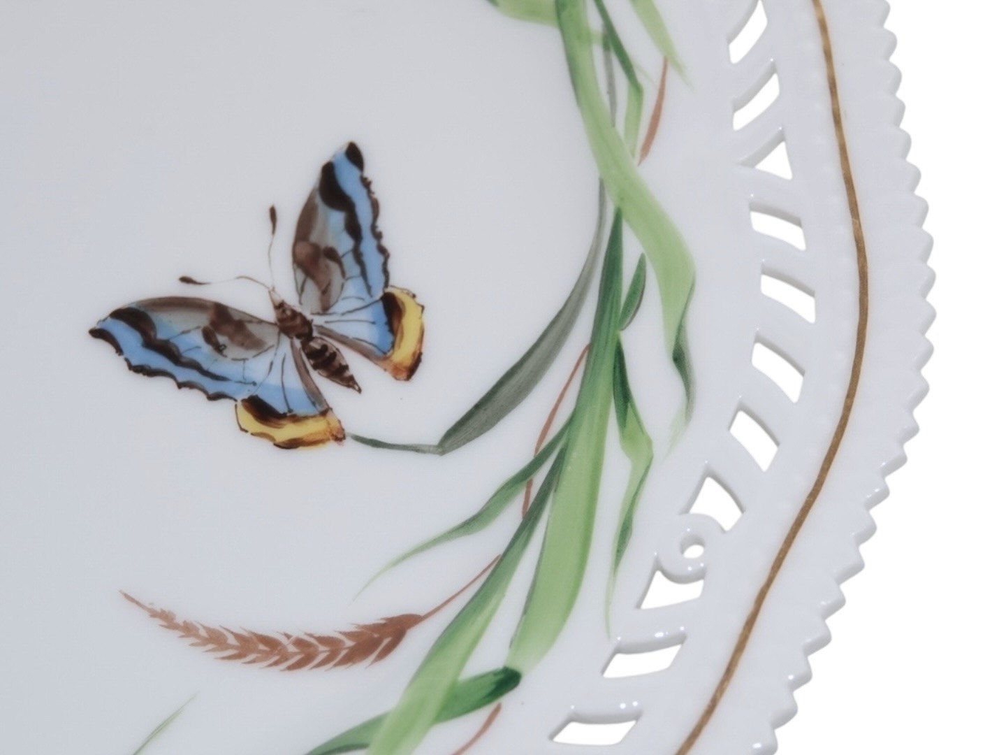 Royal Copenhagen Sommerfugl, frokosttallerken med gennembrudt kant. Denne er produceret mellem 1894 og 1897. 2. sortering. Diameter 22,5 cm. Perfekt stand uden fejl.