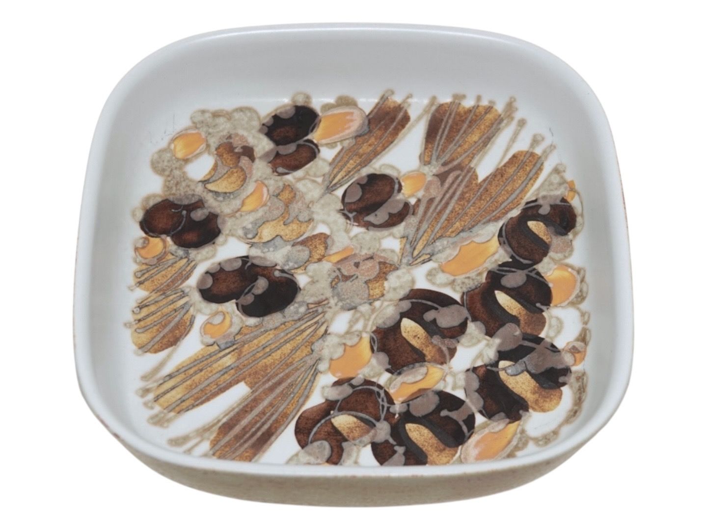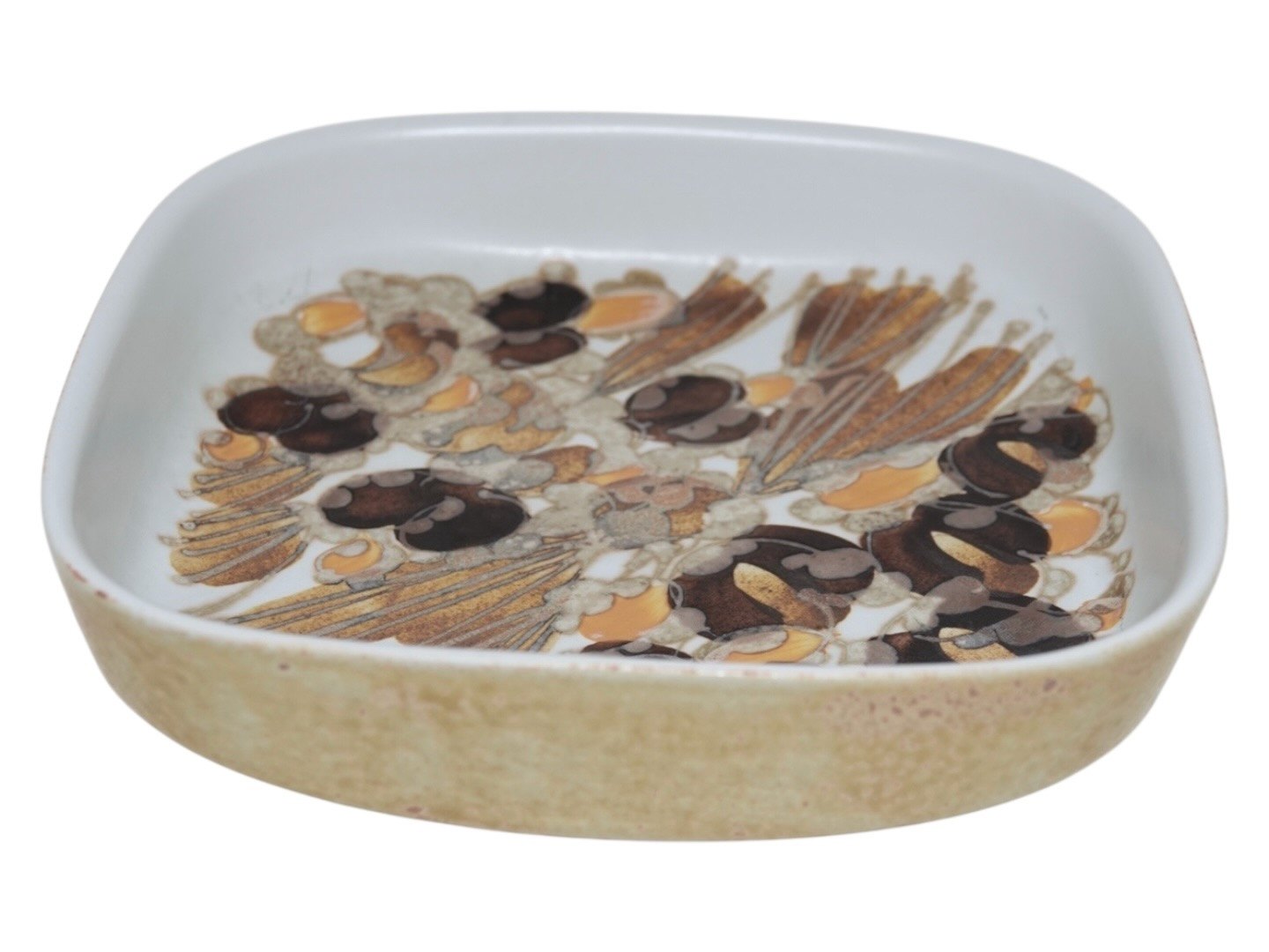 Royal Copenhagen Siena firkantet fad. Designet af Ellen Malmer. Dekorationsnummer 962/3773. 1. sortering. Måler 17,5 x 17,5 cm. Perfekt stand uden fejl.