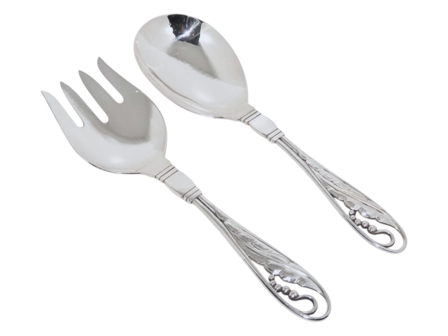 Georg Jensen Sterling sølv, ornamental stort salatsæt.