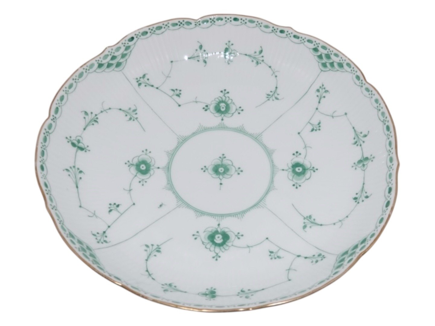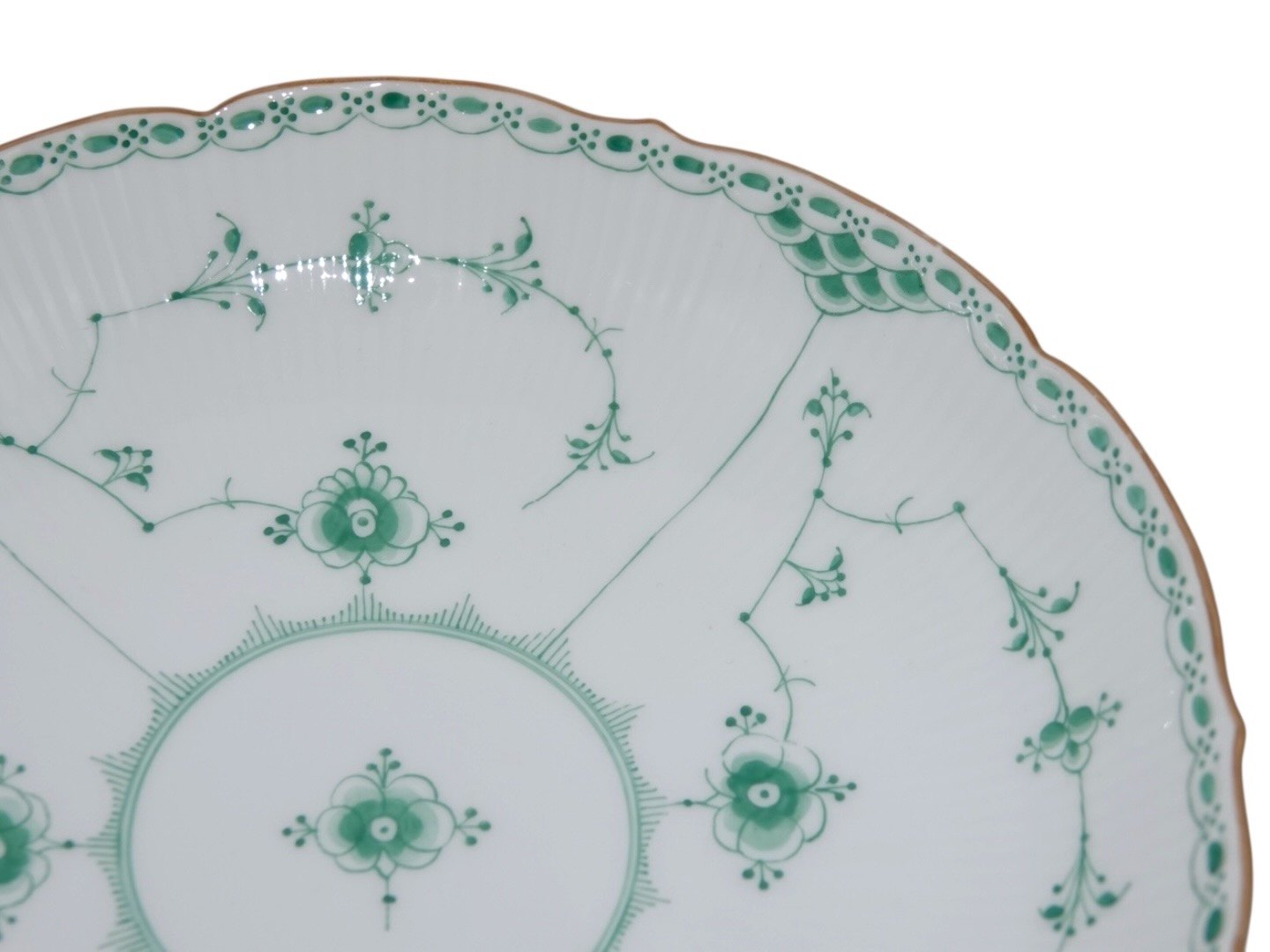 Royal Copenhagen Grøn Musselmalet Halvblonde med guldkant, kageopsats.