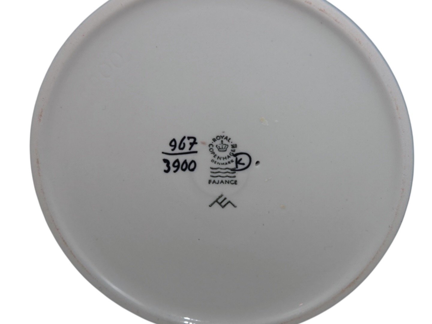 Royal Copenhagen Fajance Celeste, stor lysestage. Designet og signeret af Ellen Malmer. Dekorationsnummer 967/3900. 1. sortering. Diameter 14,6 cm., højde 11,0 cm. Perfekt stand uden fejl.