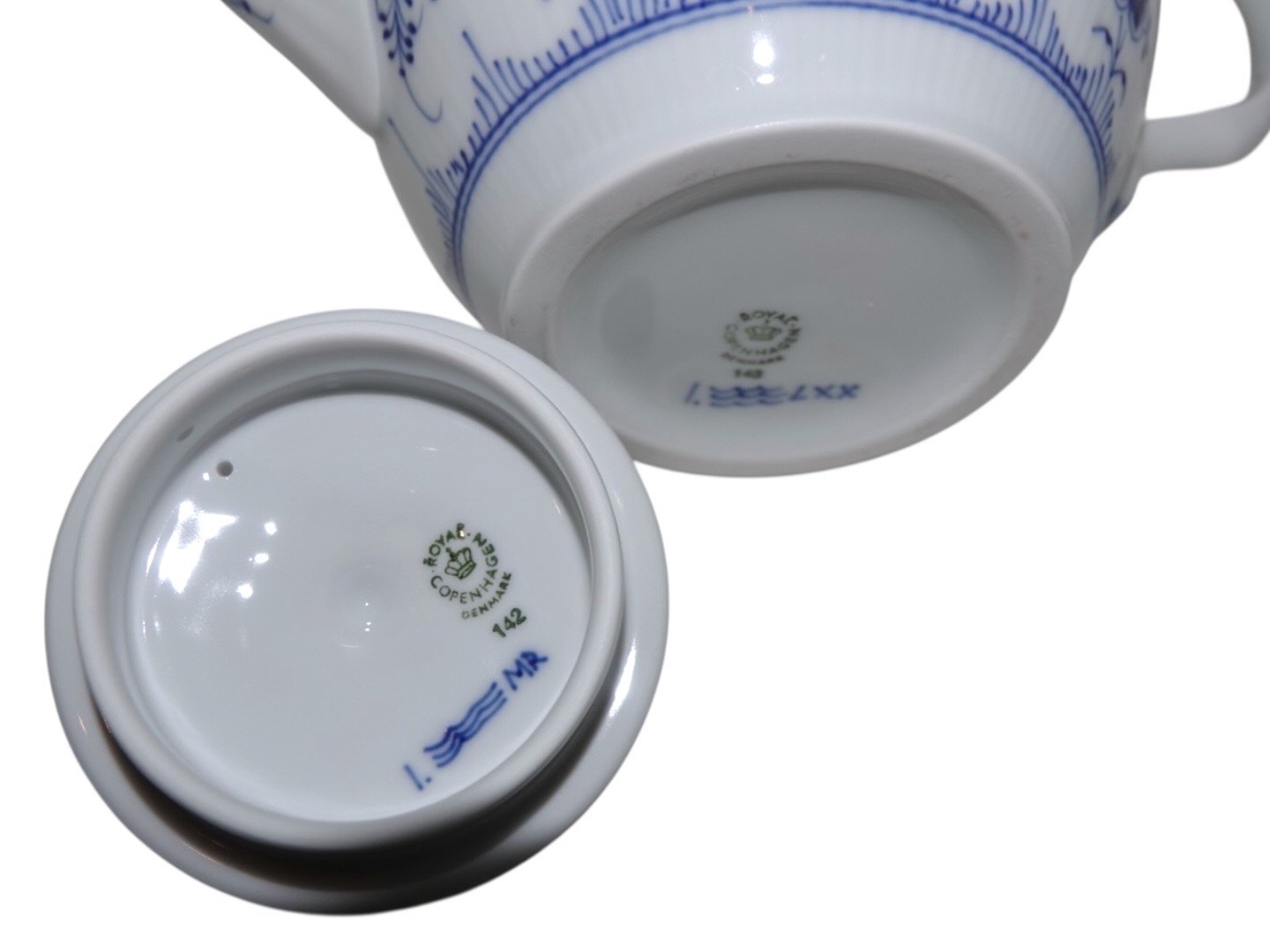 Royal Copenhagen Musselmalet Halvblonde, tekande. Dekorationsnummer 143/142. 1. sortering. Længde 24,0 cm. Indeholder 1,0 liter. Perfekt stand uden fejl.