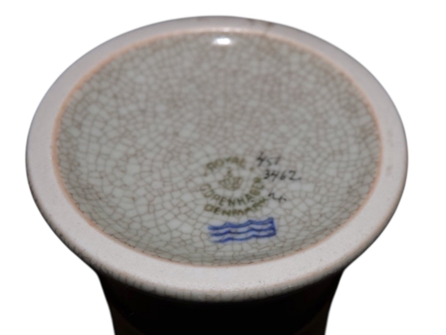 Royal Copenhagen Craquele (Krakele), vase med grøn dekoration.