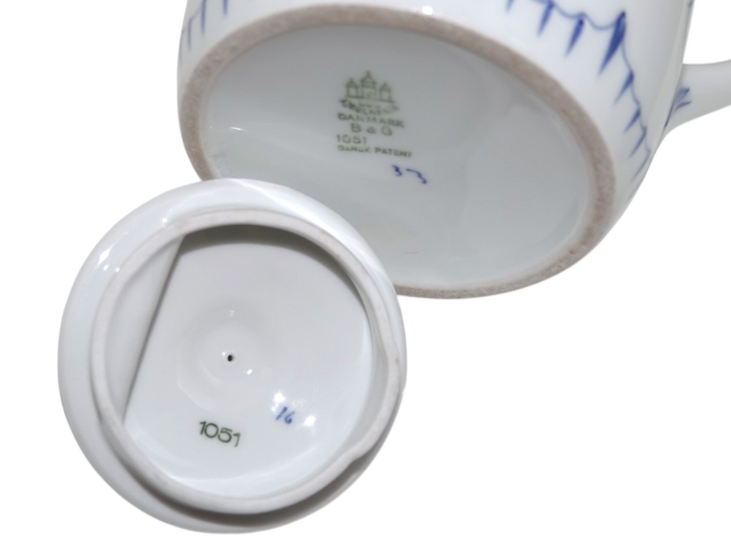 Bing & Grøndahl Blåmalet / Musselmalet tykt jernporcelæn, kaffekande.