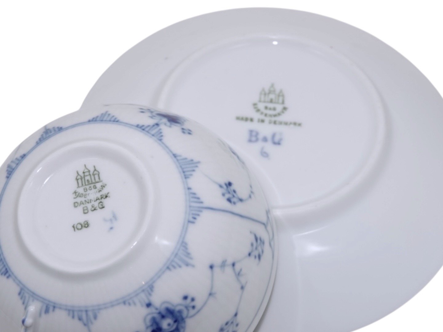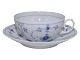 Bing & Grøndahl Blåmalet / Musselmalet Riflet, tekop med underkop. Koppen er bemalet inden i.