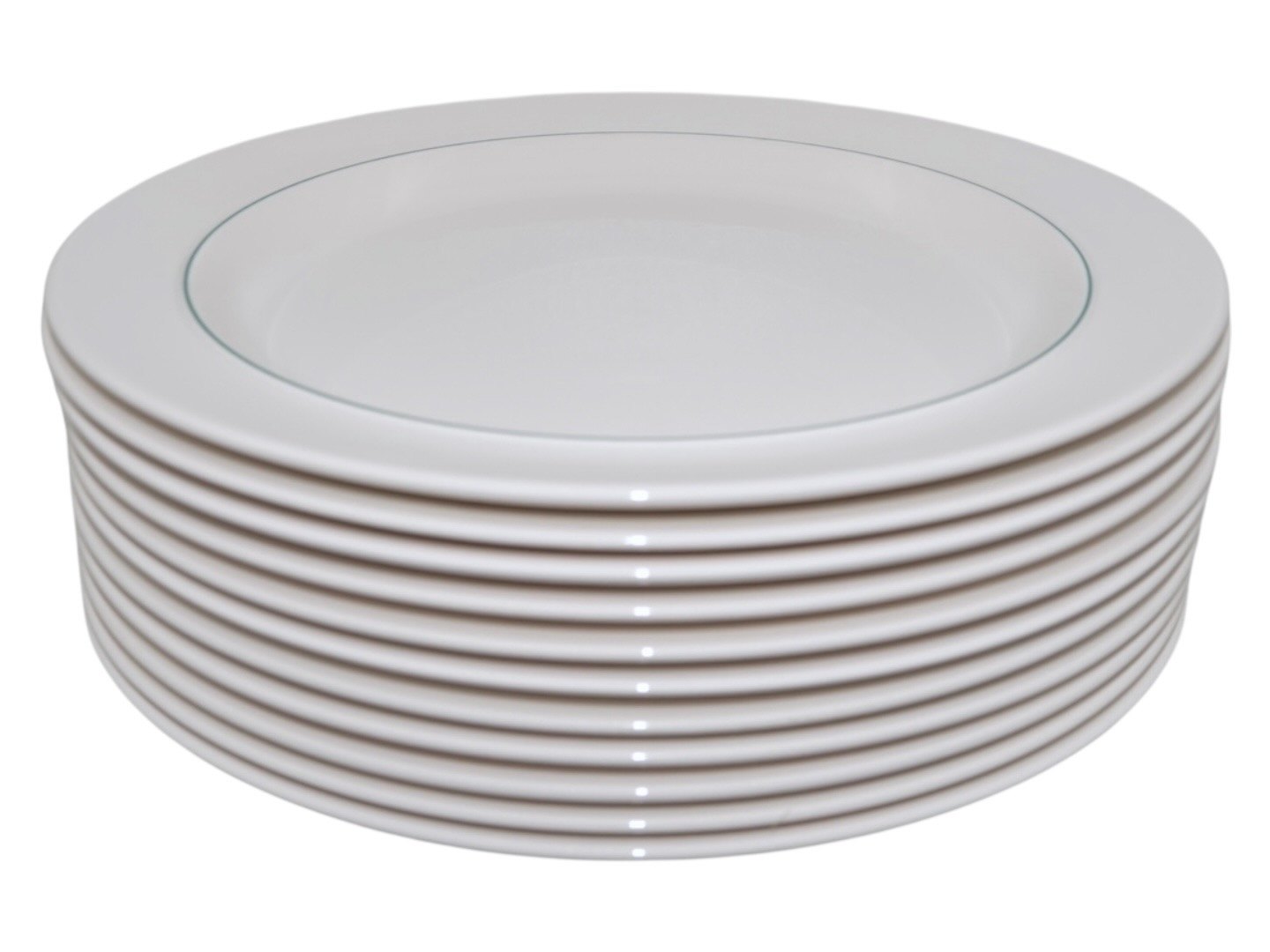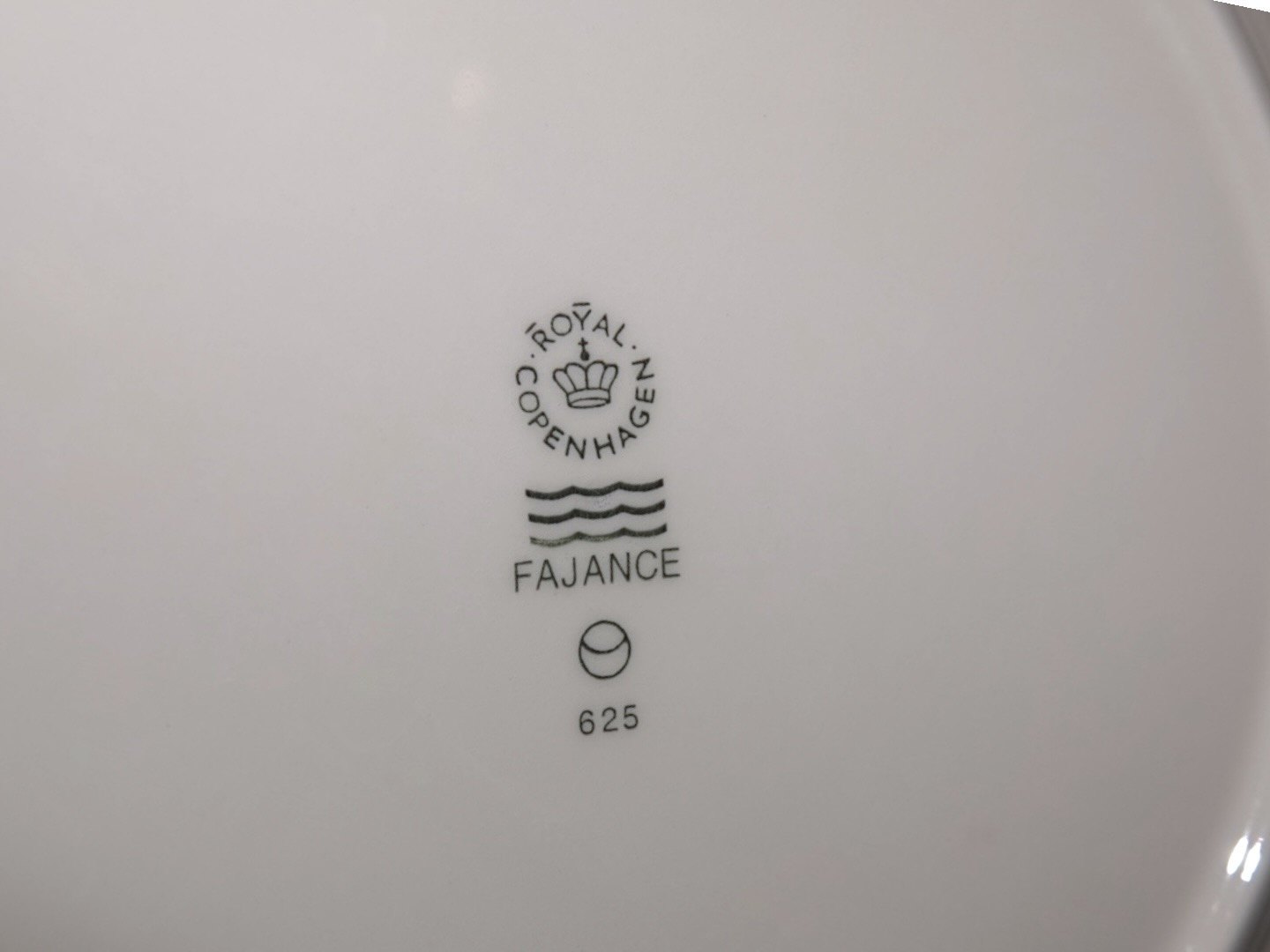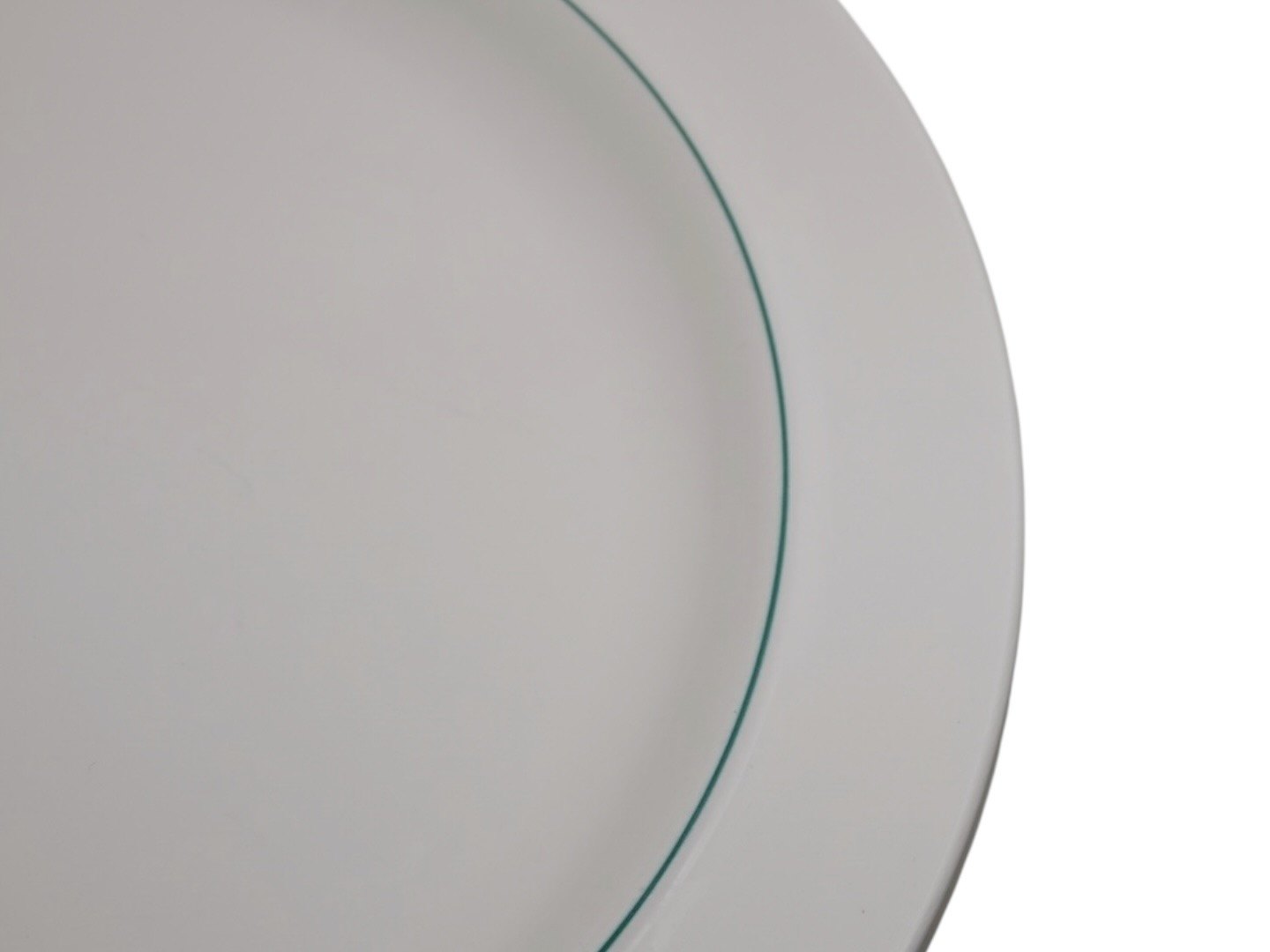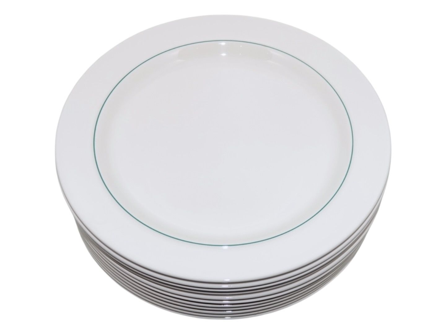 Royal Copenhagen 4 all seasons, dinner plate with green border. Designed by Grethe Meyer in 1998 on the same form as "Blue Line". Decoration number 625. Factory first. Diameter 24.5 cm. Perfect condition.