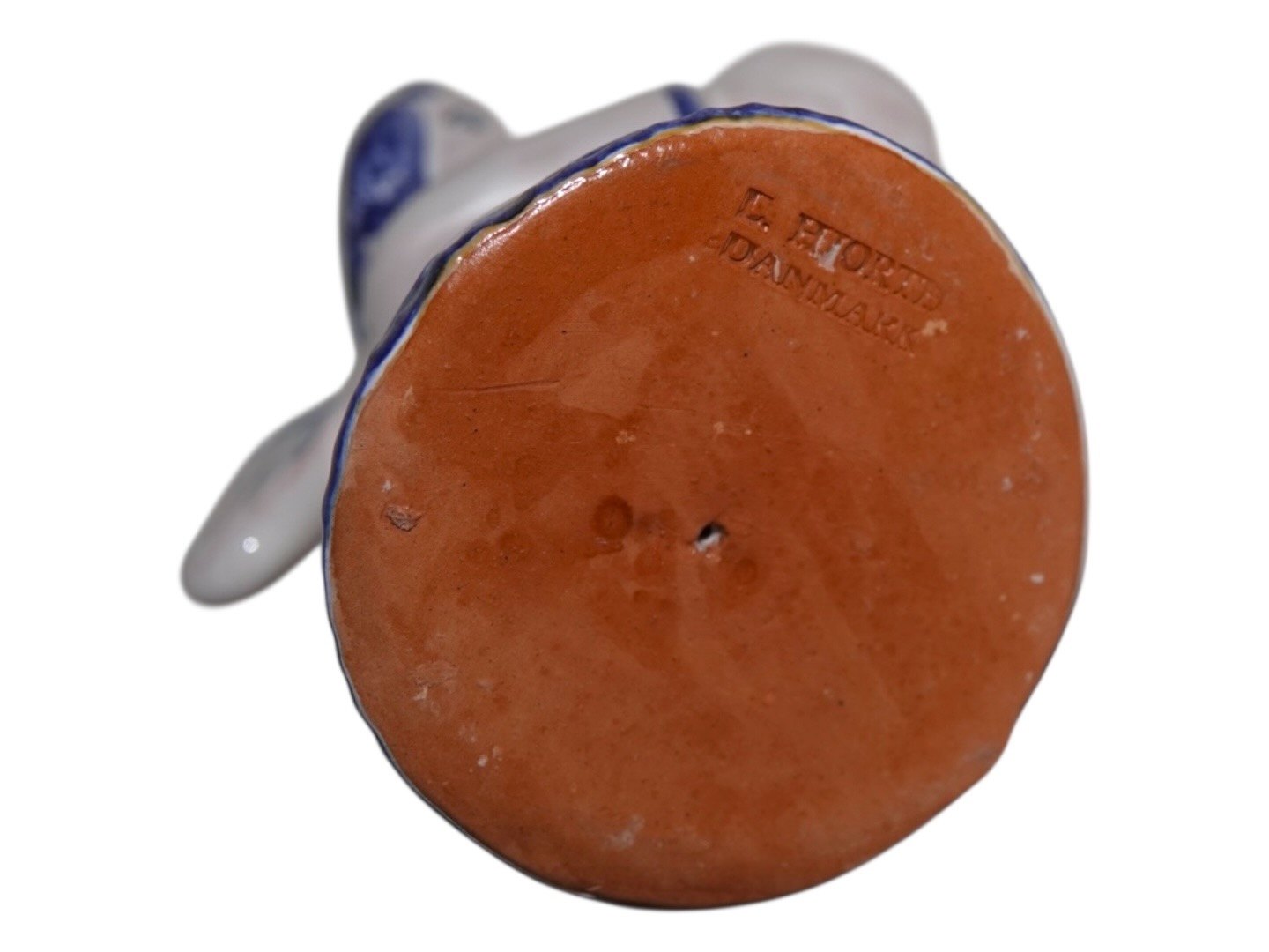 Hjorth Keramik, engel figur / lysestage med hvid og blå dekoration. Dekorationsnummer 420. Højde 11,5 cm. Perfekt stand.