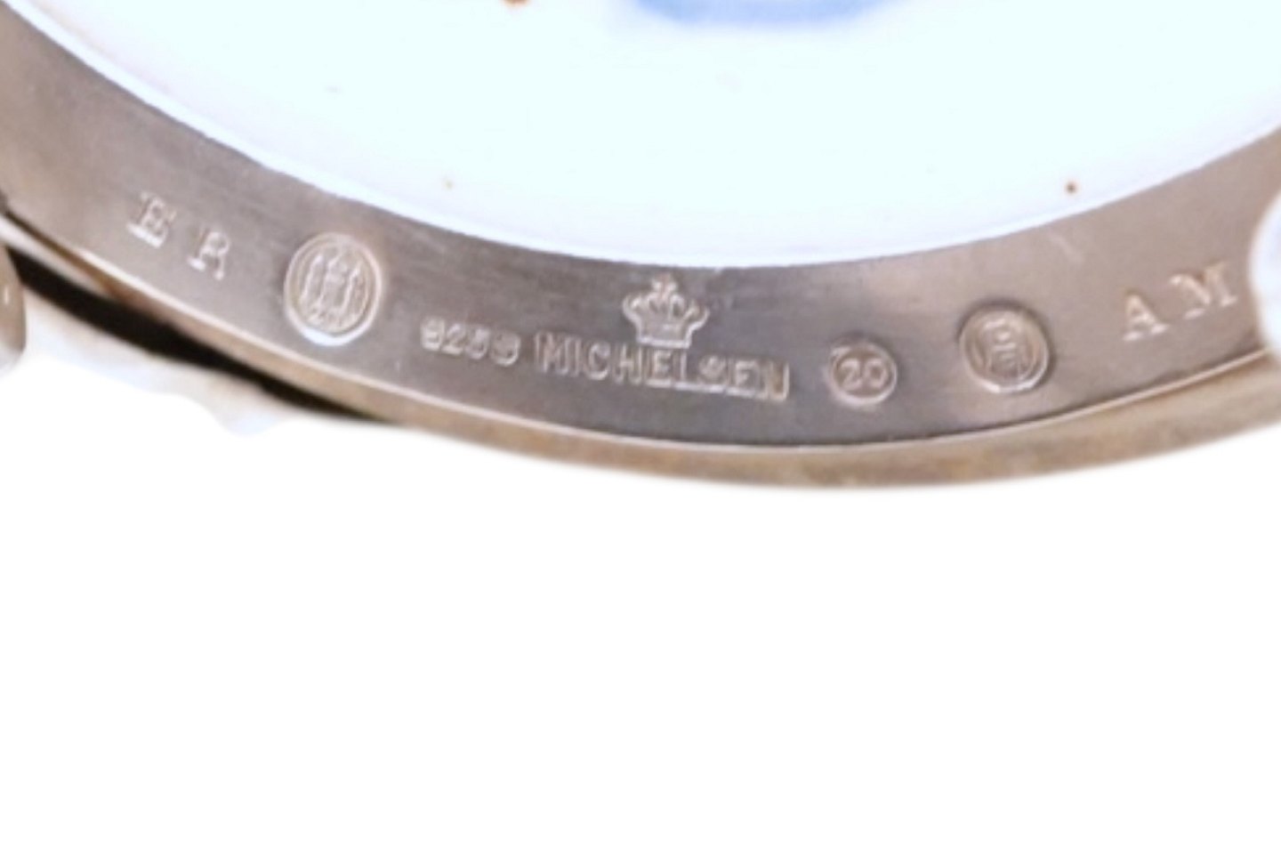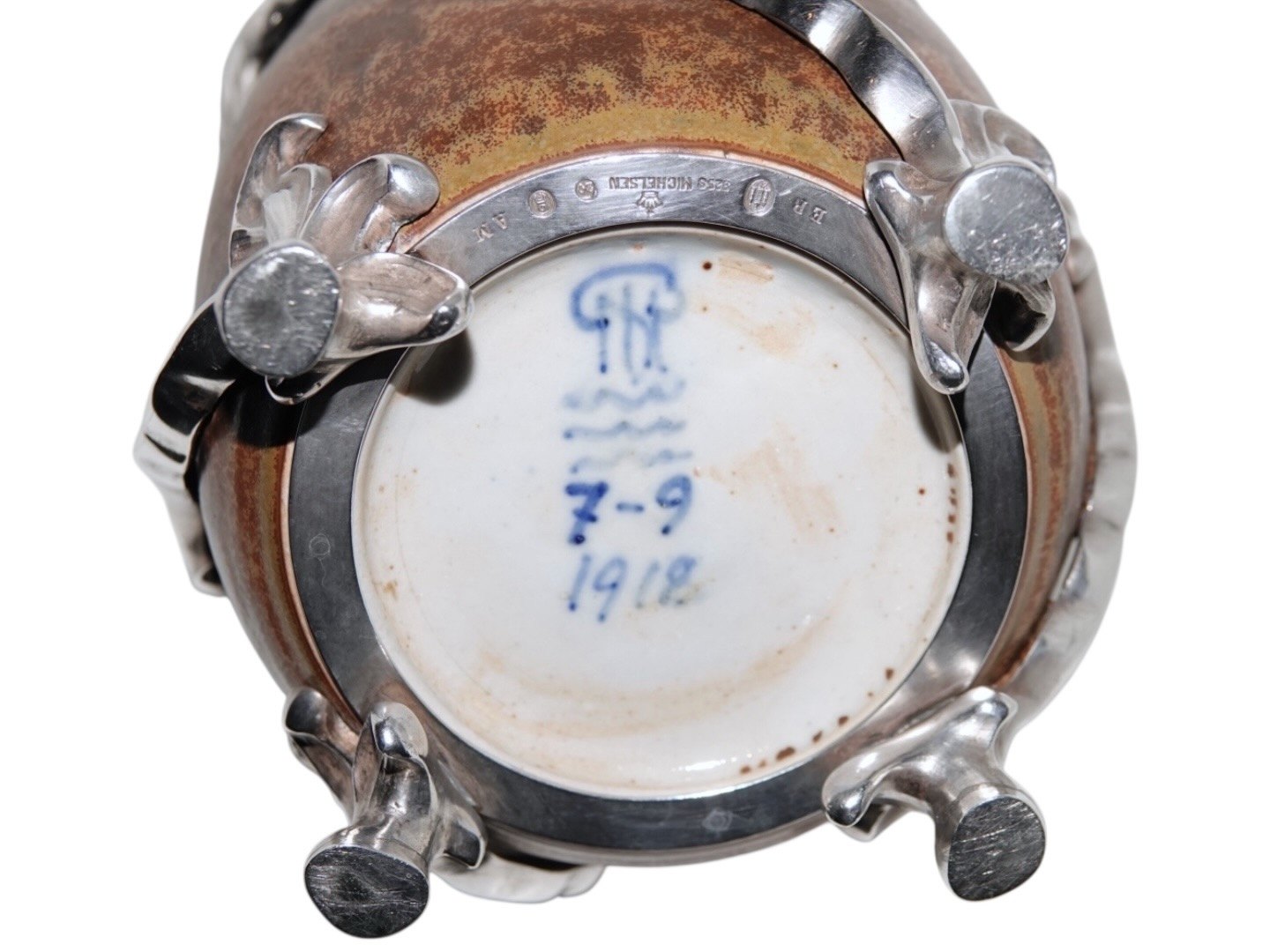 Sølvmonteringen er udført af Anton Michelsen og dateret 1920 samt med initialerne "ER".