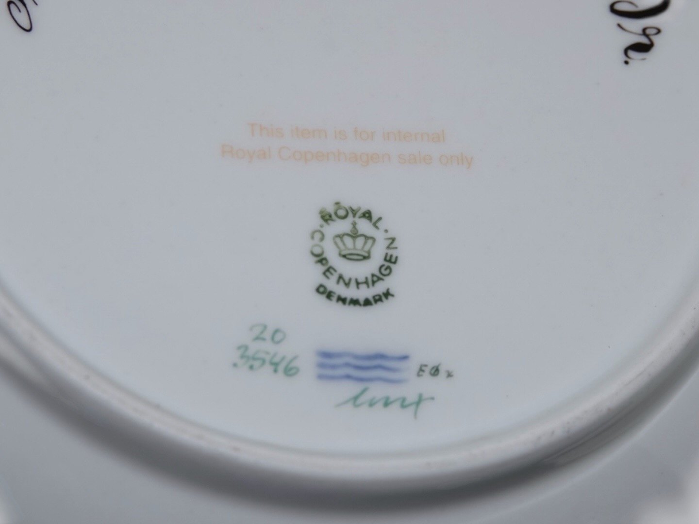 It was sold to an employee at Royal Copenhagen so marked as a factory third.