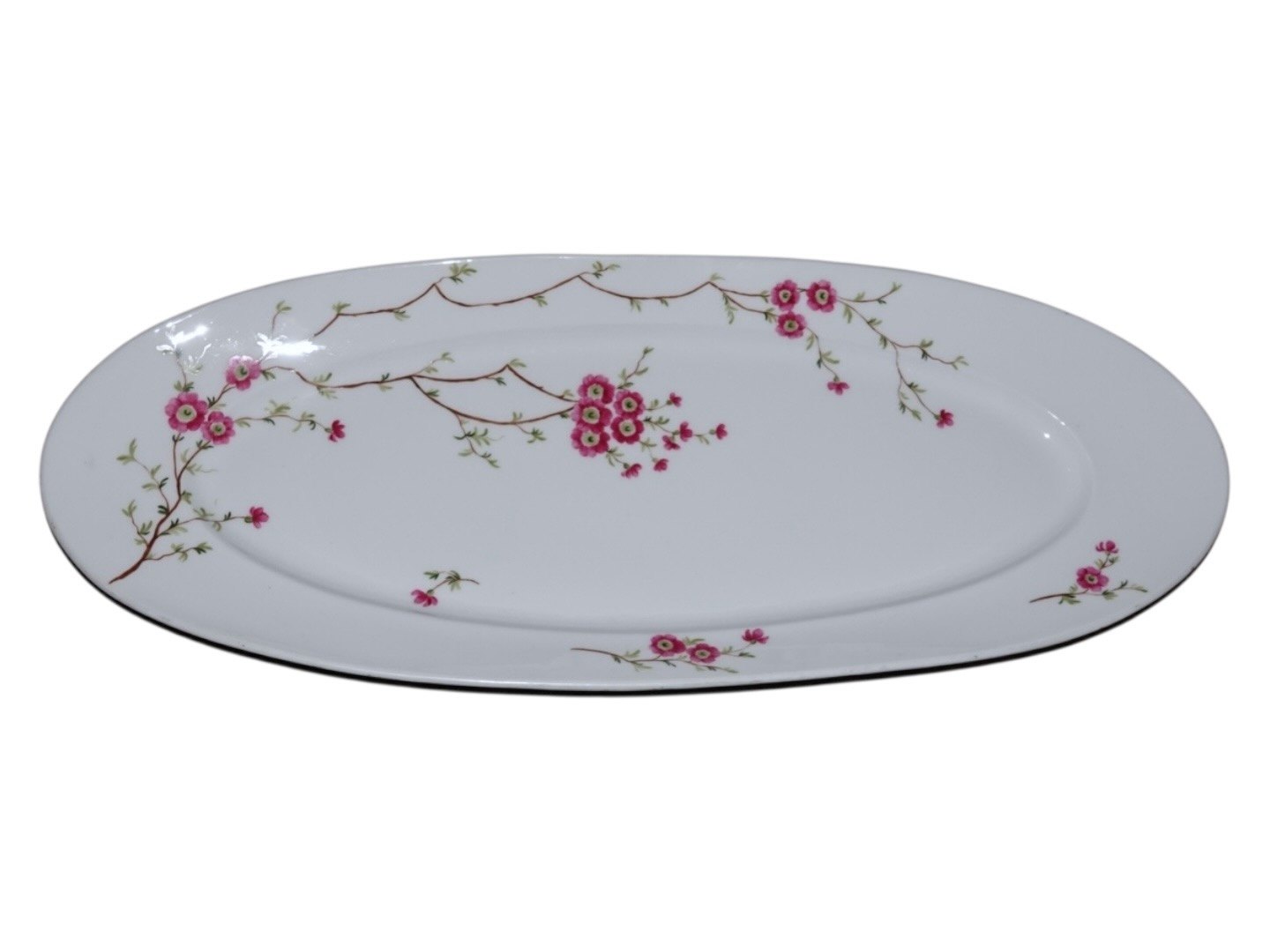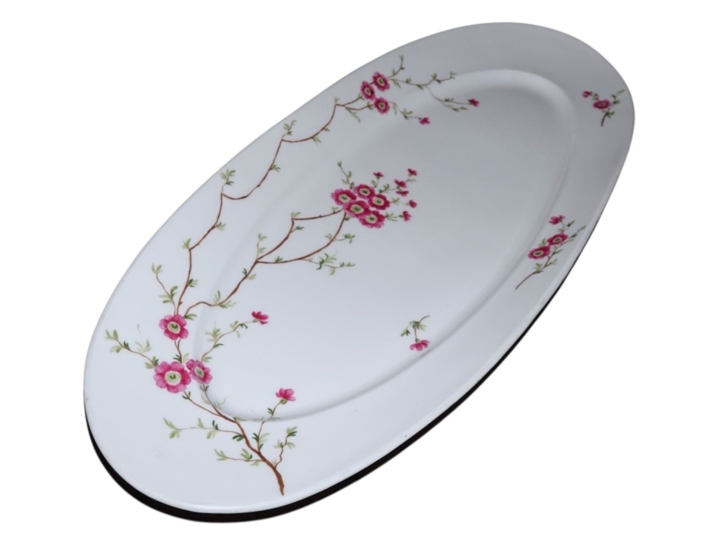 Royal Copenhagen Kirsebær, stort fiskefad dekoreret med pink kirsebærblomster.
