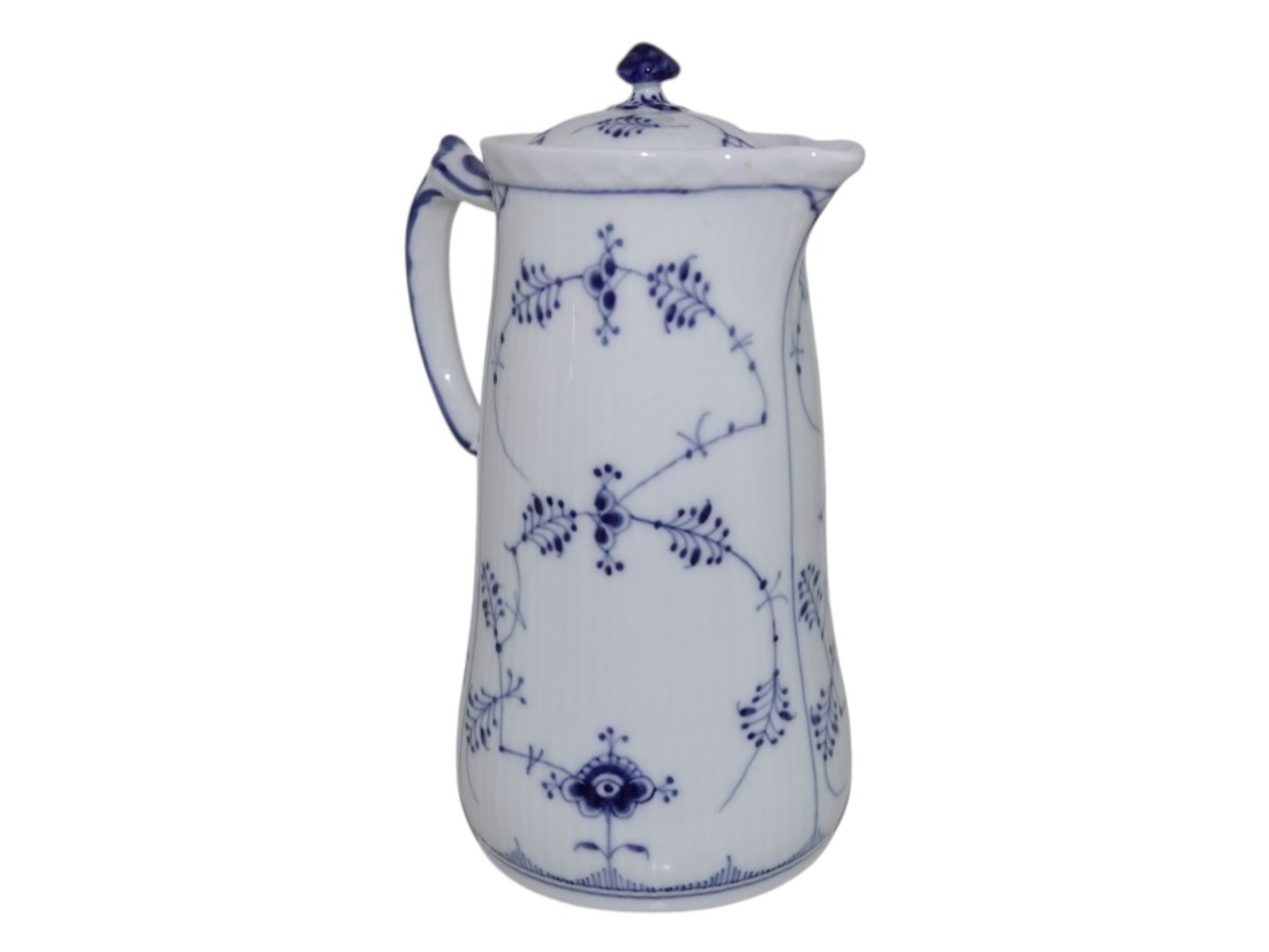 Royal Copenhagen Musselmalet Riflet, sjælden chokoladekande med tilhørende låg.