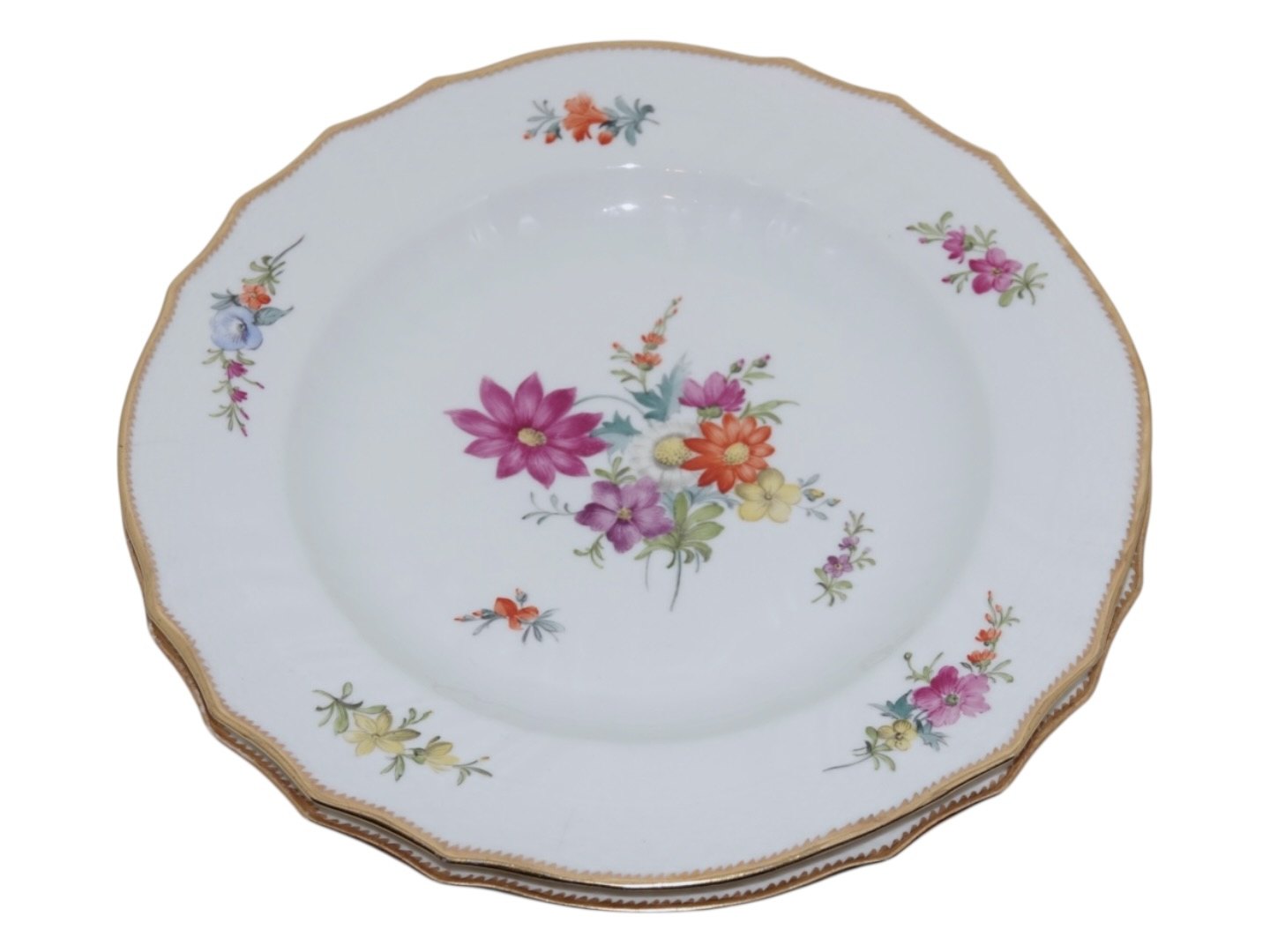 Royal Copenhagen Fuld Saksisk Blomst, lille middagstallerken. Disse er produceret før 1894. 1. sortering. Diameter 24,8 cm. Perfekt stand uden fejl.