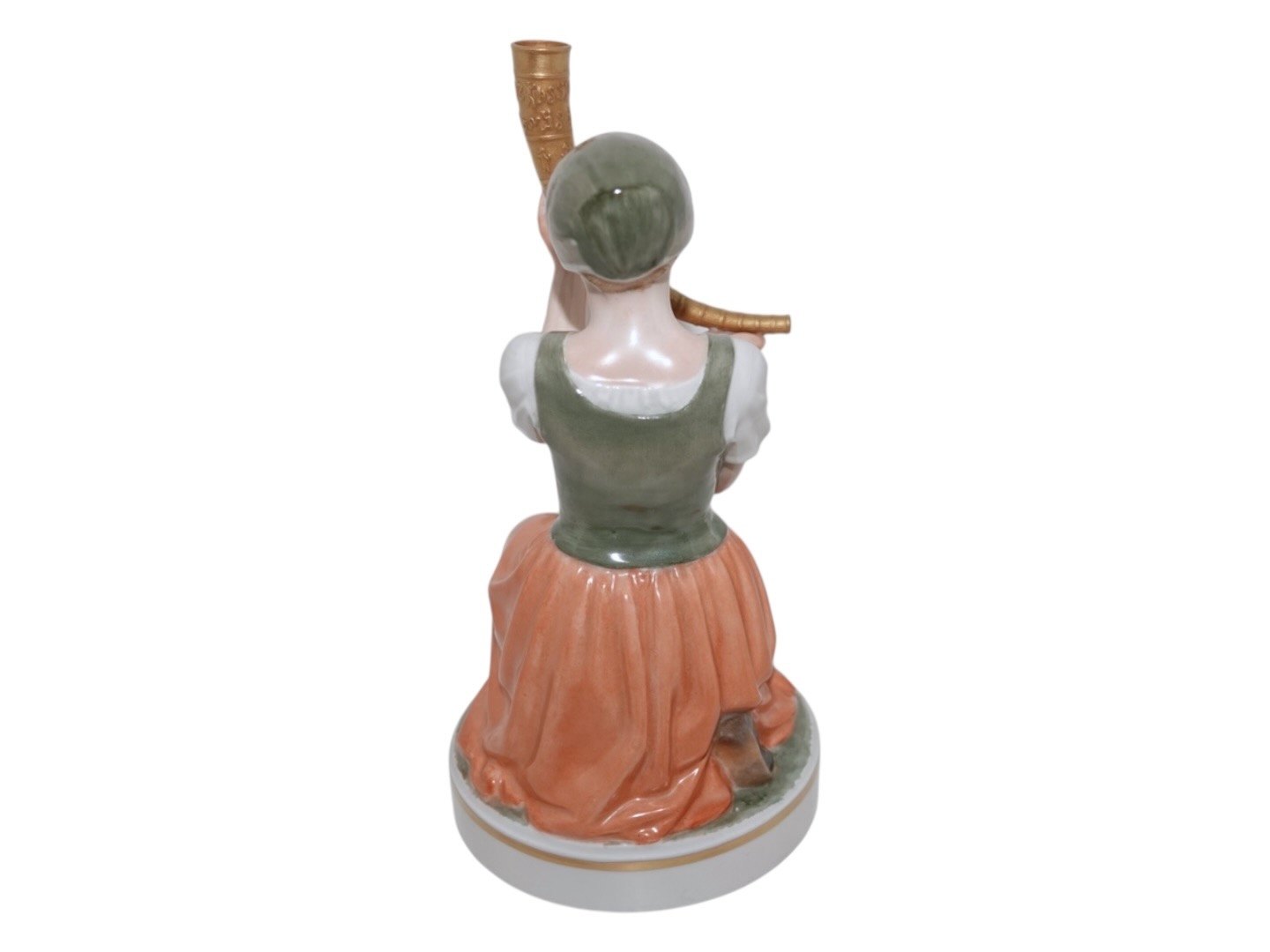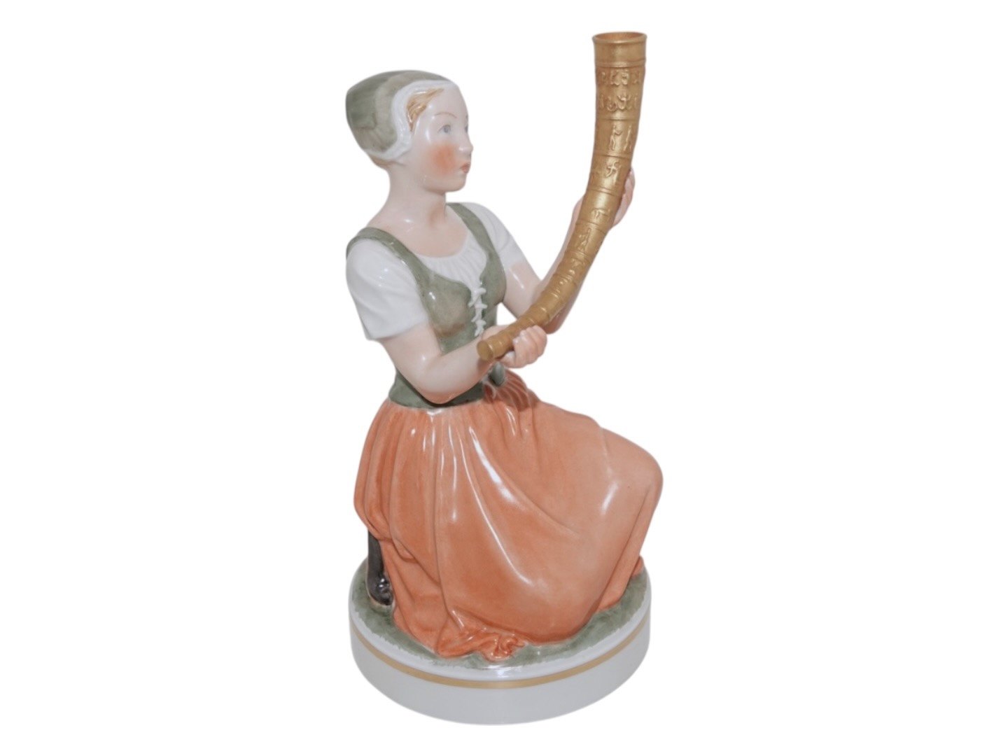 Royal Copenhagen figur, Pigen med guldhornet i overglasur. Dekorationsnummer 12242. 1. sortering. Højde 22,0 cm. Perfekt stand uden fejl.