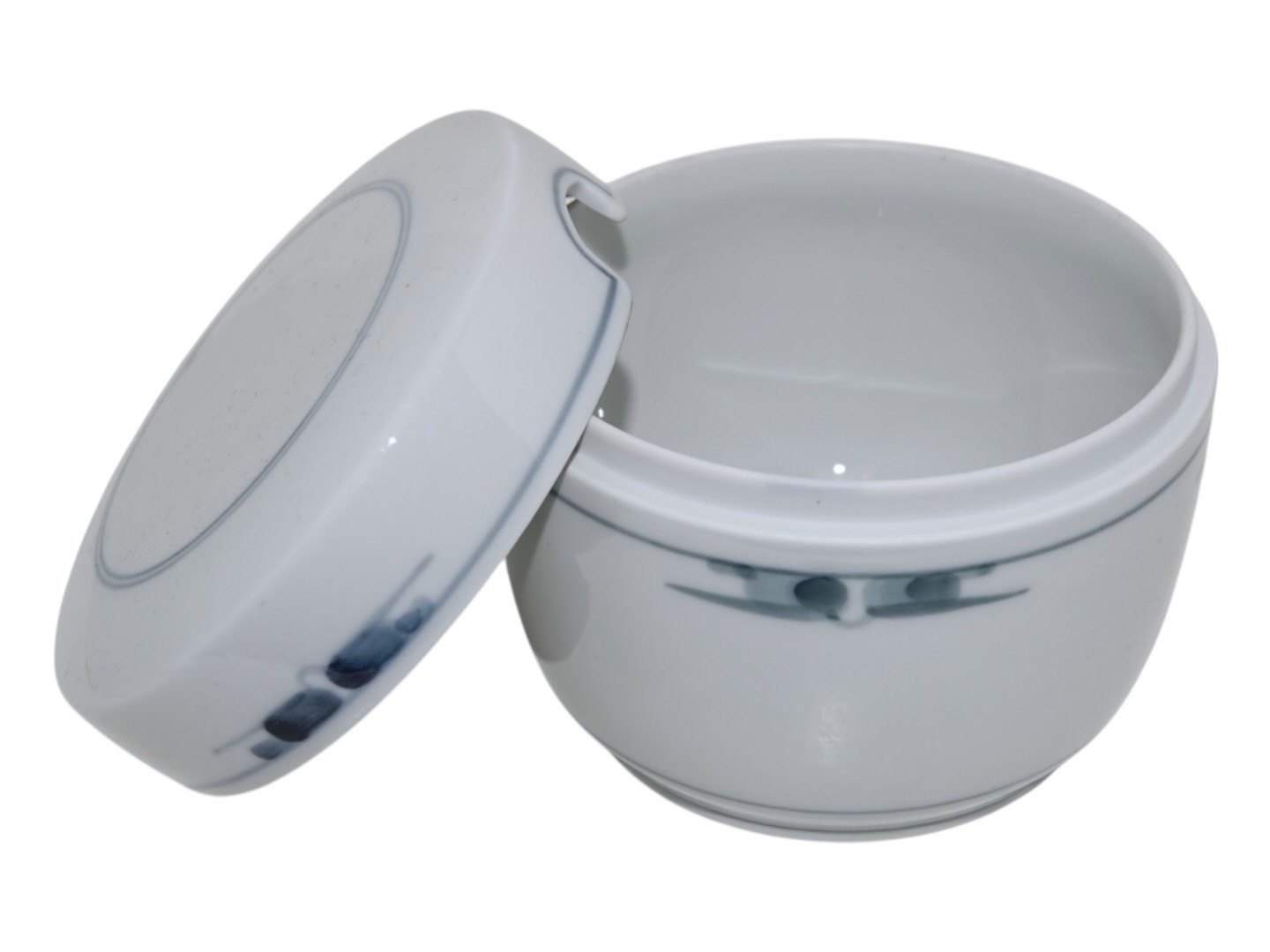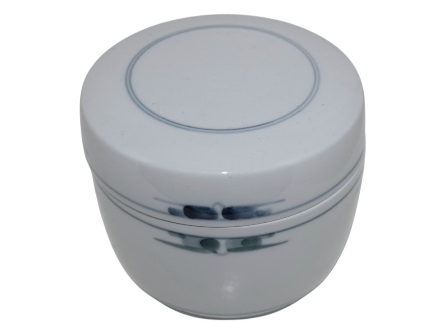 Royal Copenhagen Gemina, krukke med låg. Designet af Gertrud Vasegaard i 1959 og udgået af produktion i 1990'erne. Dekorationsnummer 41/14623. 1. sortering. Diameter 11,2 cm., højde 9,0 cm. Perfekt stand uden fejl.