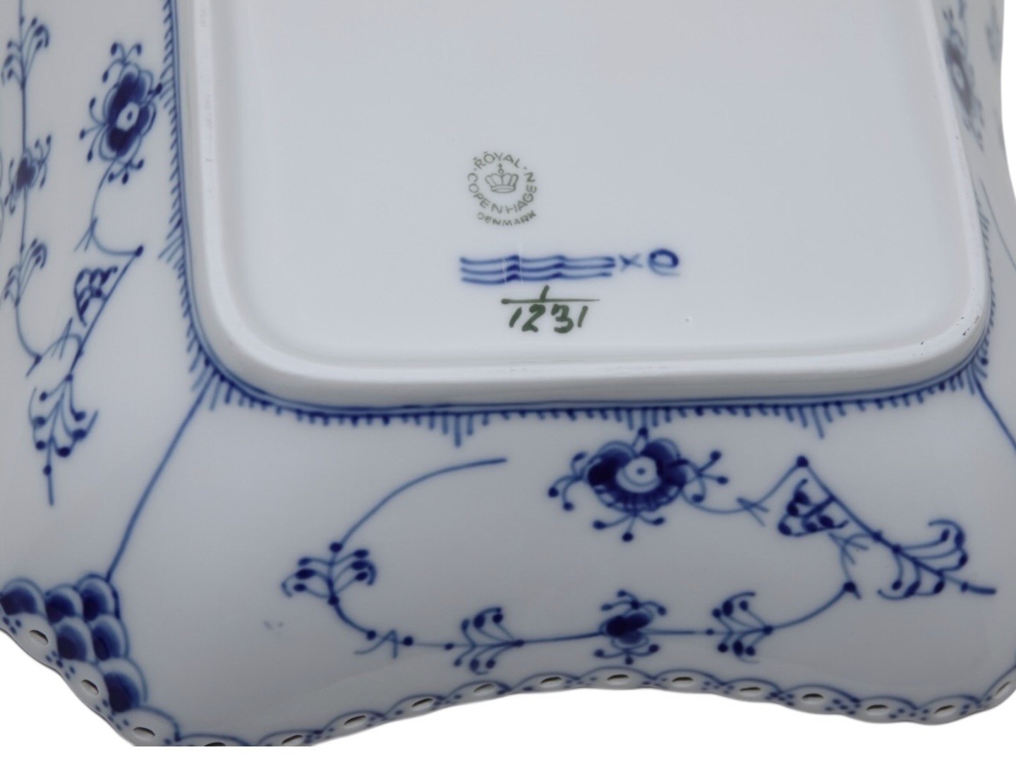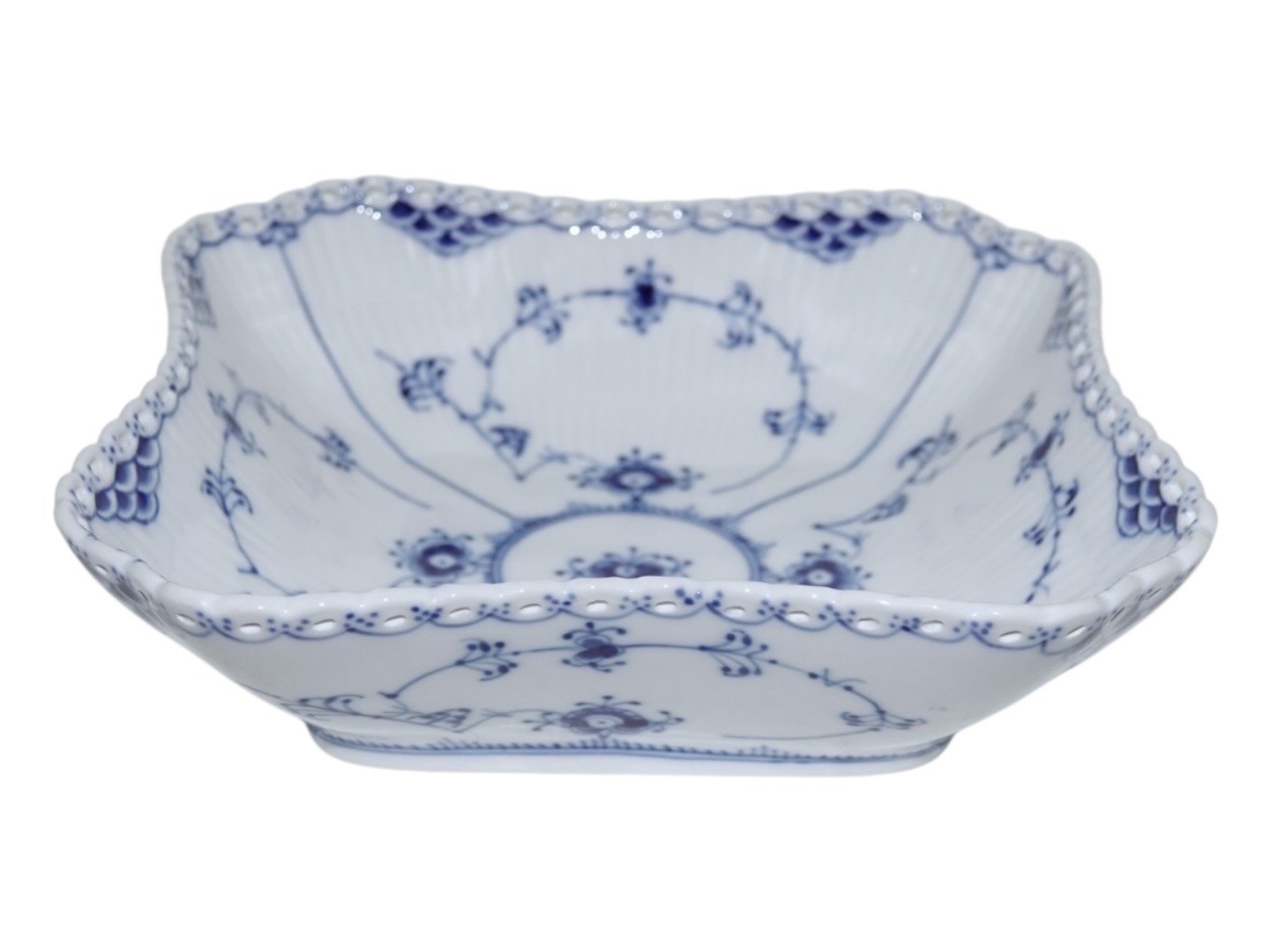 Royal Copenhagen Musselmalet Helblonde, firkantet kartoffelskål. Dekorationsnummer 1/1224. Denne er produceret mellem 1985 og 1991. 3. sortering. Måler 21,0 x 21,0 cm. Perfekt stand uden fejl.