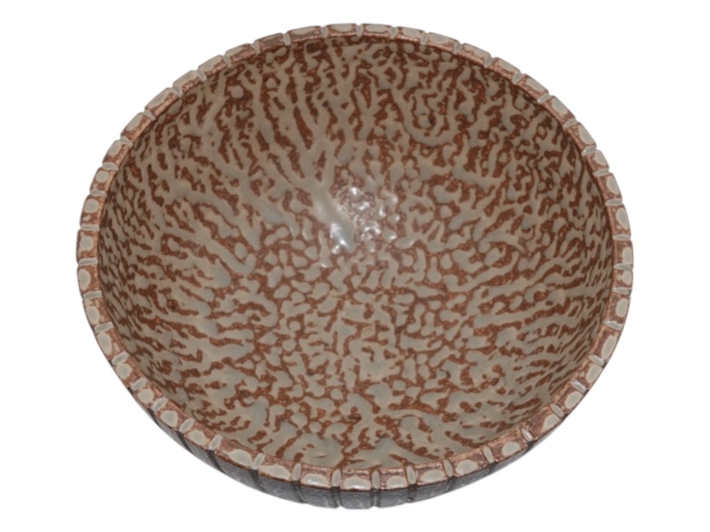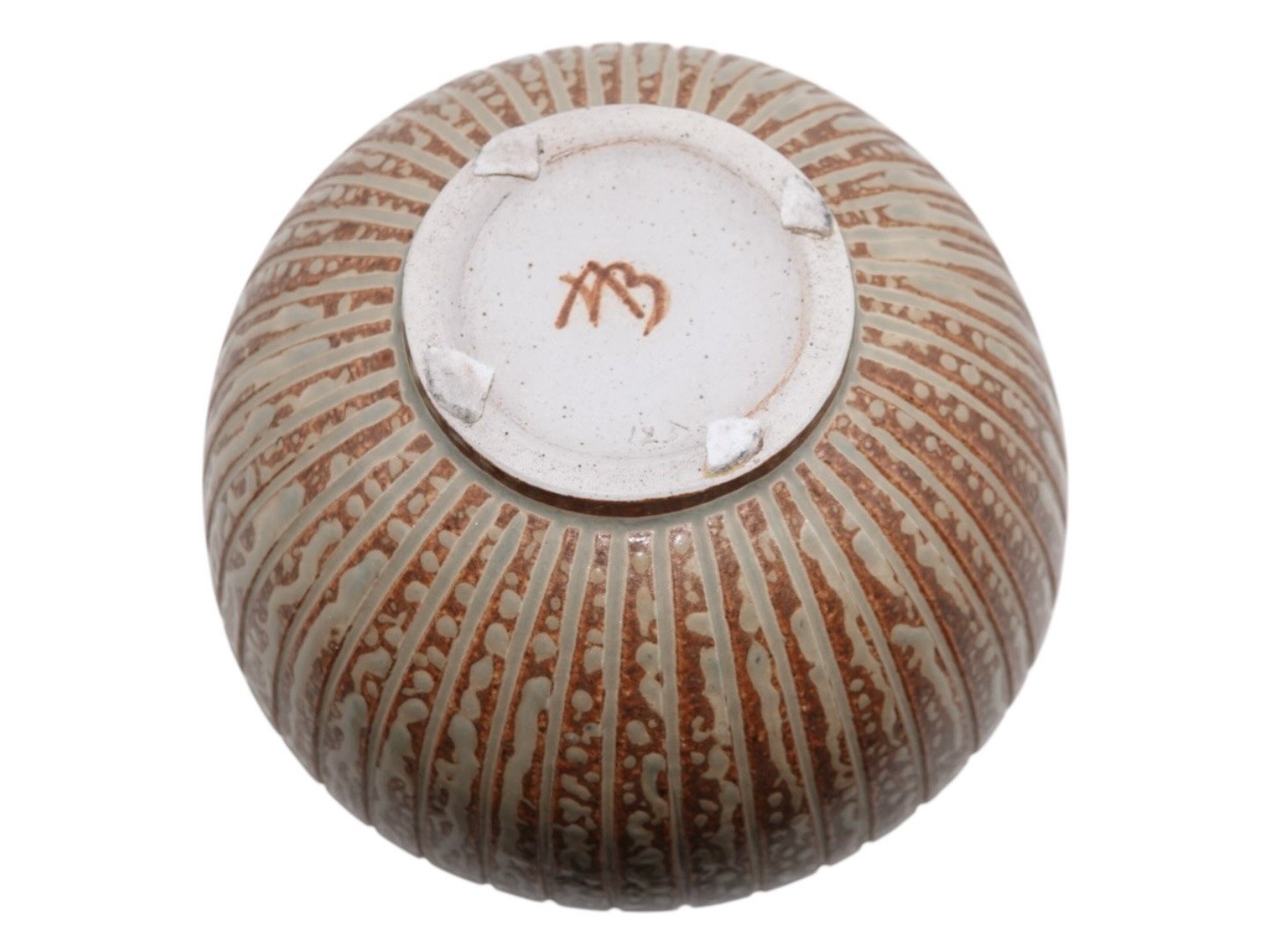 Arne Bang keramik, skål med riller og en flot glasur. Designnummer 123. Diameter 18,8 cm., højde 9,2 cm. Perfekt stand.