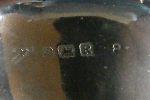 Stempler: "CSG & Co" for producent, "Anker" for Birmingham, "Løve" for sterling sølv og "R" for 1941-42.
