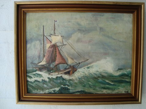 Maleri af Ove Rützou - Hollandsk Kuf i høje bølger.