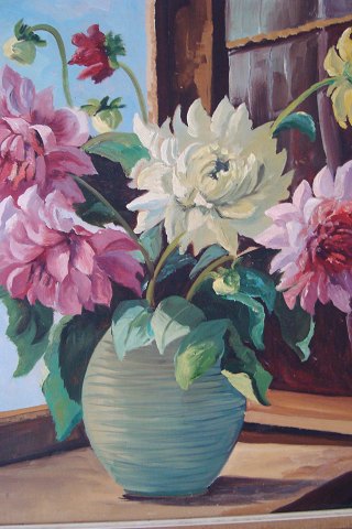 Maleri - Georginer i vase.