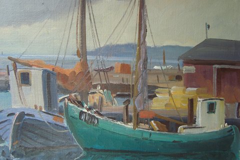 Maleri af H. Ytting - Fiskekuttere i havn.