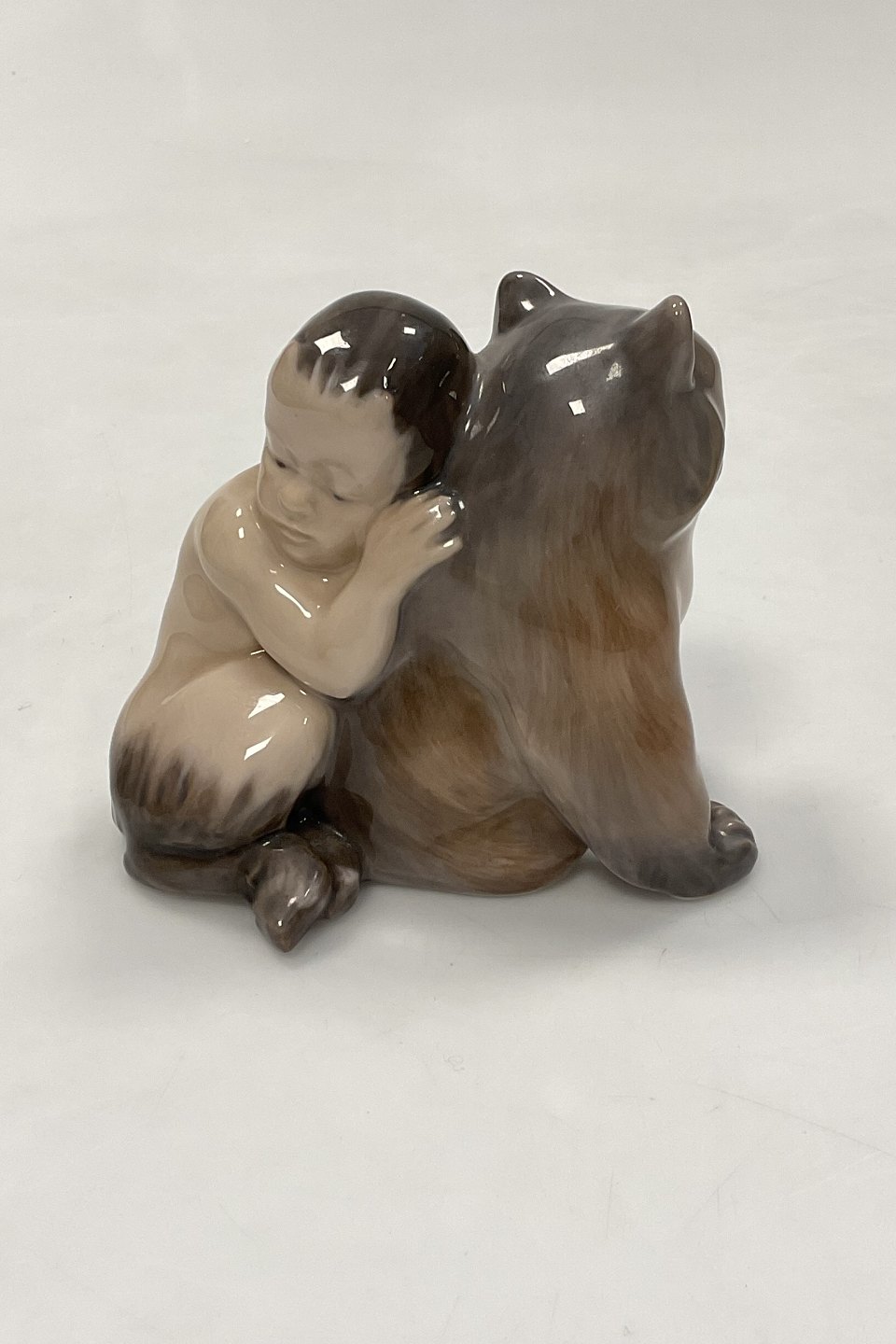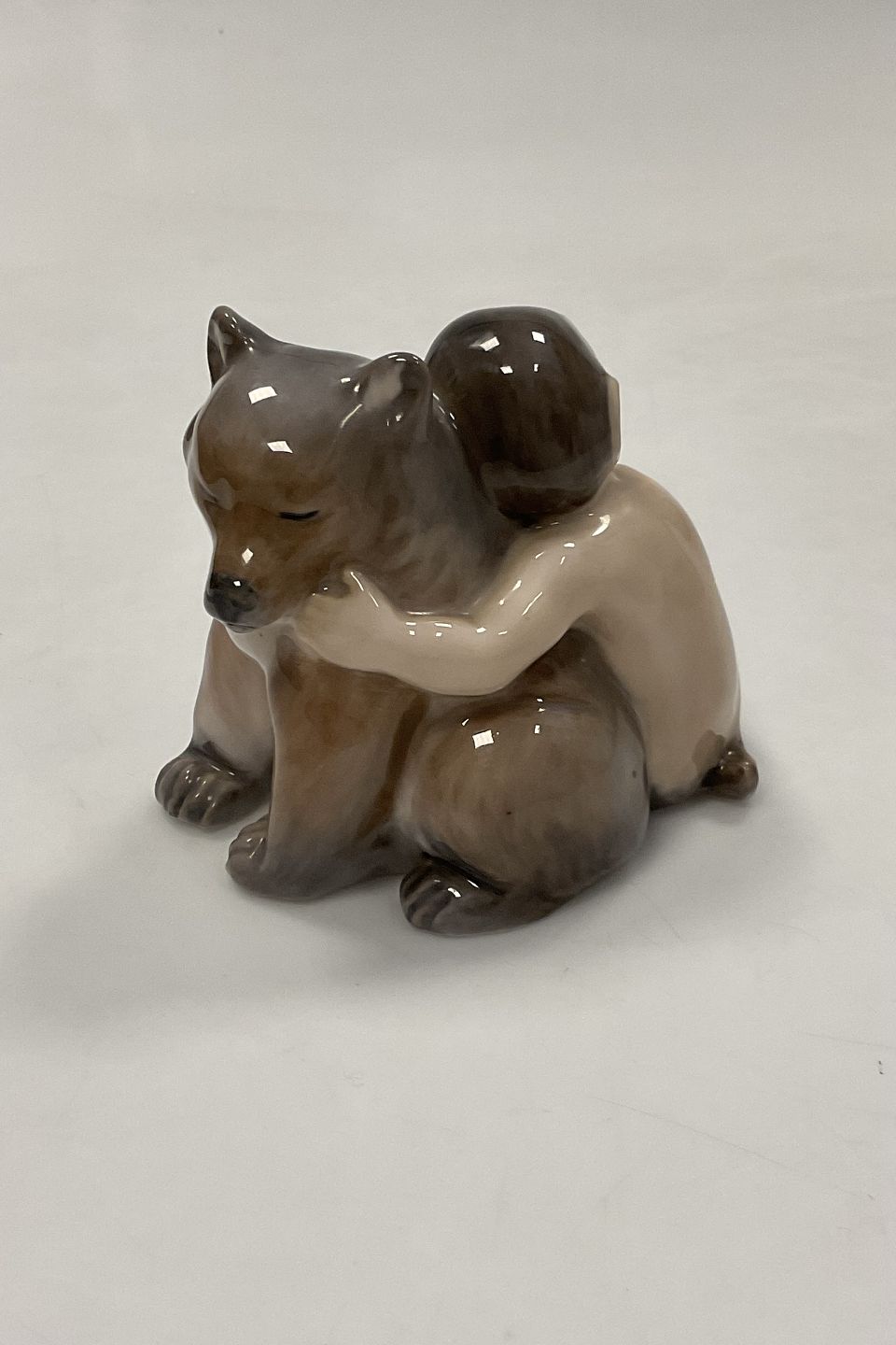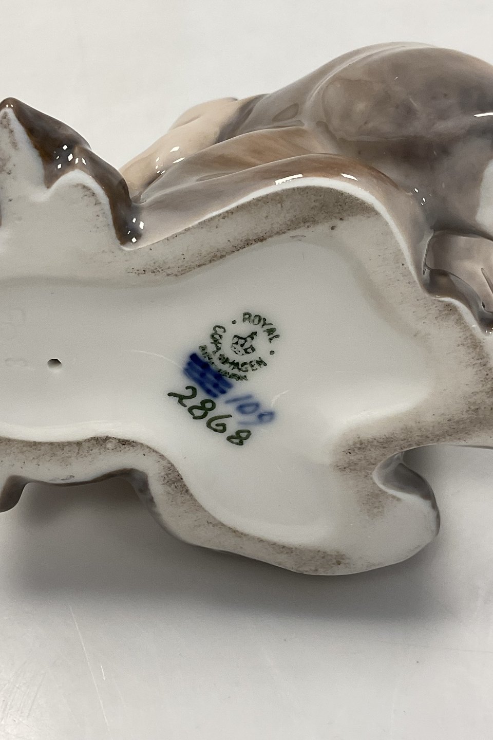 Royal Copenhagen Figur Faun/Pan med børneunge No 2868. Måler 11cm x 9cm og i perfekt stand. 1st sortering.