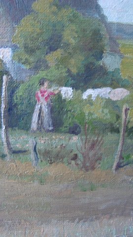 Landskab med gård og kvinde ved vasketøjssnor - August 1911.