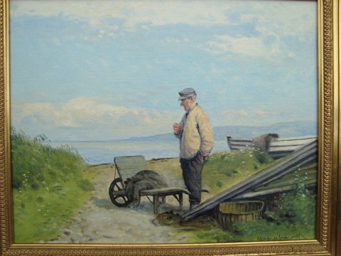 Maleri - Niels Walseth - Sjællandsk kystparti med fiskerleje.